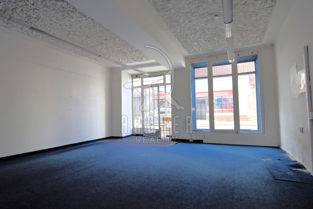 Obchodní prostory v 1.NP o výměře 96m2 maji samostatný, přímý vstup z hlavní ulice, nabízející obchodní plochu, kancelář, sociální zázemí a vstup na společnou zahradu. Vytápění elektrická akumulační kamna.