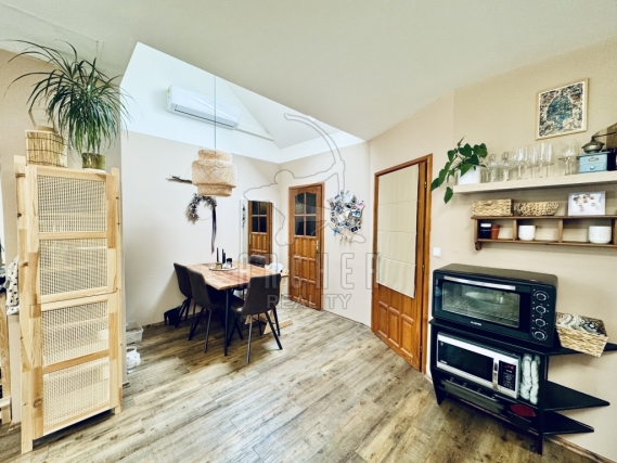 Jedinečný podkrovní byt se zahradou a sklepní místností v rodinném domě v zahradní čtvrti nedaleko Jarova. Do bytu se vstupuje z chodby do rozlehlého obývacího pokoje. Je členěný na obývací část s pohovkou a křeslem, hrací kout se skříňkami, jídelnu s vysokým stropem a kuchyňský kout s kuchyňskou linkou ve tvaru L. Zkosené stropy a přiznané trámoví přináší kouzlo atypičnosti.