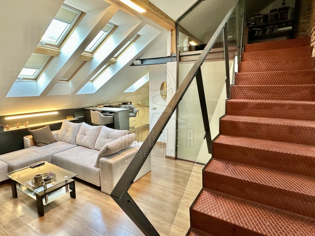 Luxusní, designový byt se nachází v samotném srdci Vinohrad s terasami a výhledem na Hrad a celou Prahu.