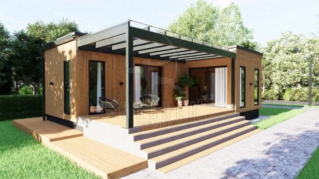 Konstrukce domu je ocelová, zateplená je vatou 15 cm, strop je zateplený 25 cm a podlaha 20 cm. Z venku je konstrukce obložená dřevem sibiřský modřín, které je ošetřeno proti vnějším vlivům. Střecha mobilheimu je ocelová, vyspádovaná a s okapy, okna jsou s dvojskly. A lze dodělat i terasu a schody jako je na prvním obrázku či spoustu jiných úprav.