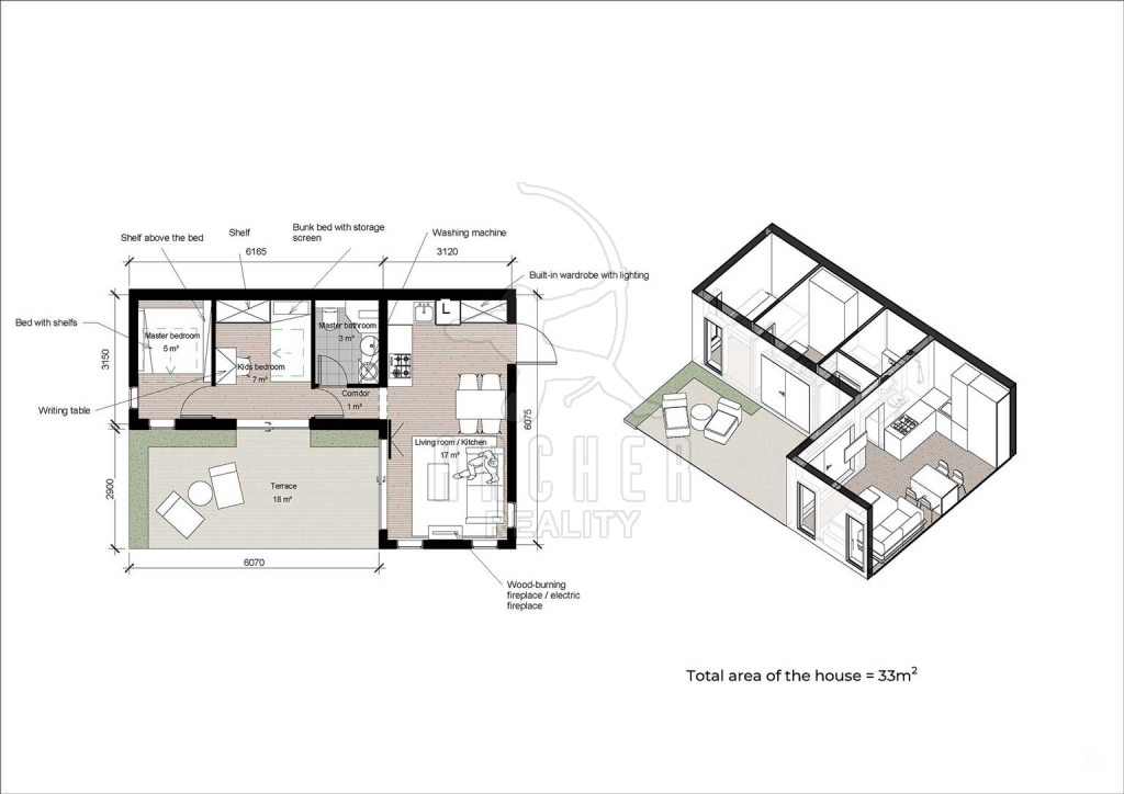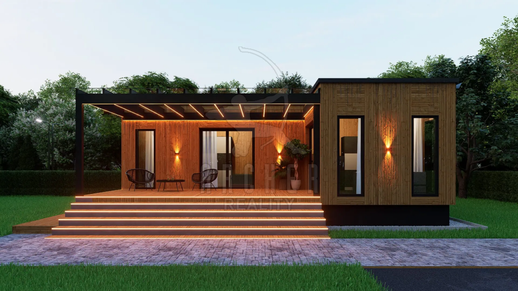Funkční a stylový modulární dům o celkové ploše 44 m2 s klasickou plochou střechou, určený i k trvalému bydlení. Skládá se ze dvou modulů v jednom podlaží a nabízí tři promyšlené místnosti. Ideální pro bydlení, podnikání nebo letní odpočinek. Plně přizpůsobitelný vašemu životnímu stylu a preferencím.