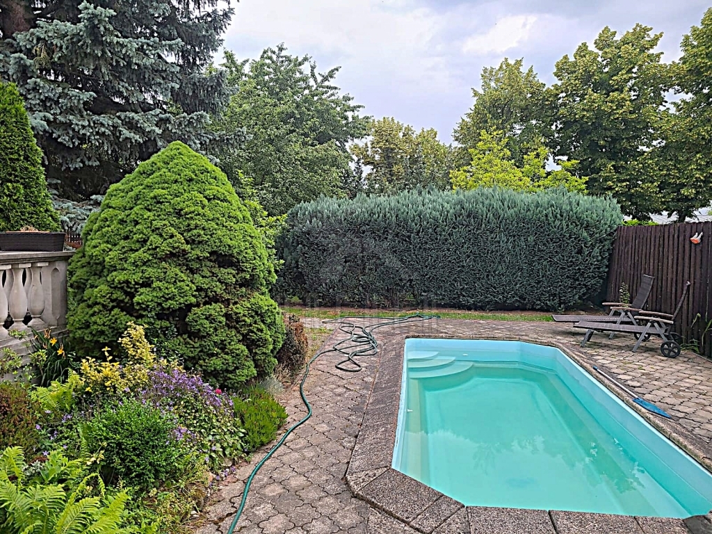 Velká zahrada se vzrostlými stromy, bazén. Nemovitost na klidném, hezkém, slunném místě, vhodná pro velkou rodinu, vícegenerační bydlení, případně kombinace bydlení v Praze a podnikání.