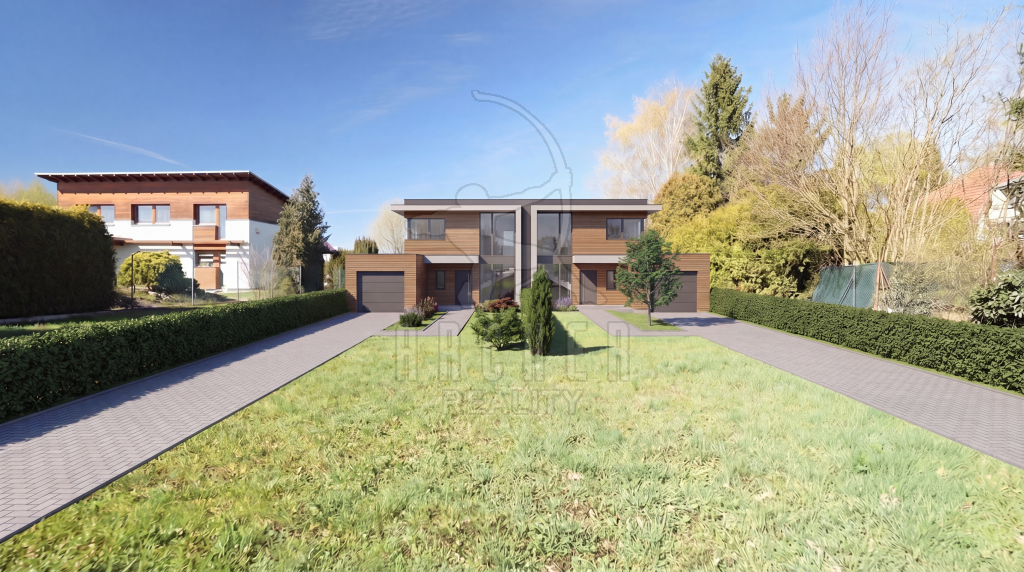 - 1200 m2 pro rodinný dvojdům (pozemek je možné rozdělit na dvě části tak, že na každé části (min. výměra 600 m) bude stát jedna polovina dvojdomu – jeden řadový dům).