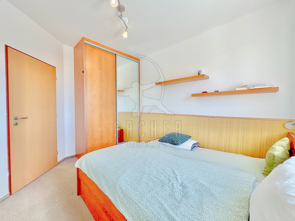 | Popis vybavení bytu | Kuchyňská linka s barovým stolem a s vestavěnými spotřebičemi: indukční varnou deskou, horkovzdušnou a mikrovlnnou troubou, myčkou a dřezem s baterií s dřezovou sprchou. Vestavěné skříně se zrcadlovými dveřmi ve vstupní chodbě a v jedné z ložnic. Koupelnová skříň. Obytná stěna v obývacím pokoji. |