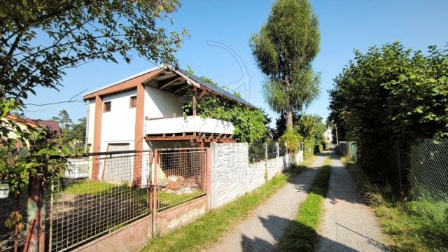 Chata na pozemku je montovaná (cca 75m2), napojena na elektřinu, voda ze studny, s krbem a kotlem na tuhá paliva. Stav k celkové rekonstrukci, demolici nebo k přestavbě na RD (po úpravě ÚP v roce 2026). Parkování možné na pozemku (1-2 auta). Součástí zahrady rovněž vzrostlé keře, stromy.