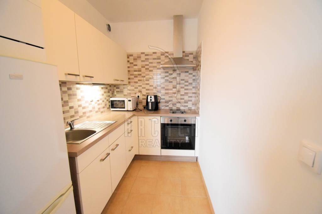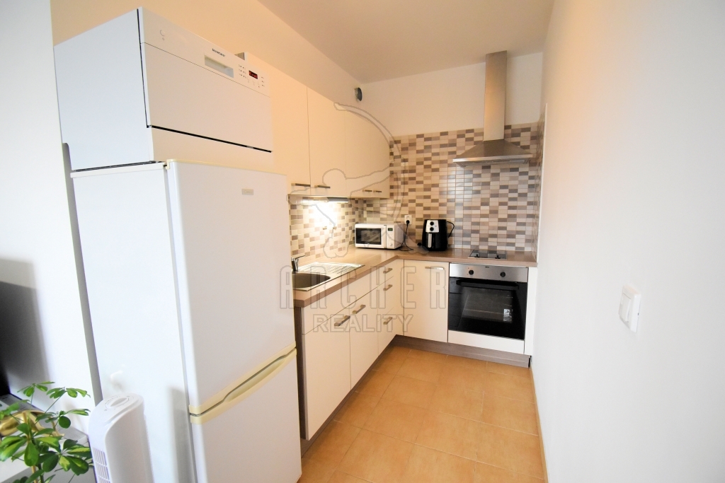 Prodej bytu včetně moderní kuchyňské linky s vestavnými spotřebiči (sklokeramická varná deska, el.trouba, digestoř, lednice s mrazákem).
