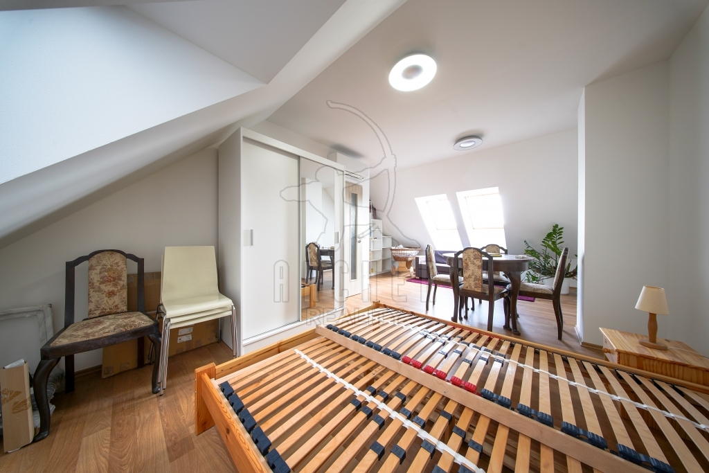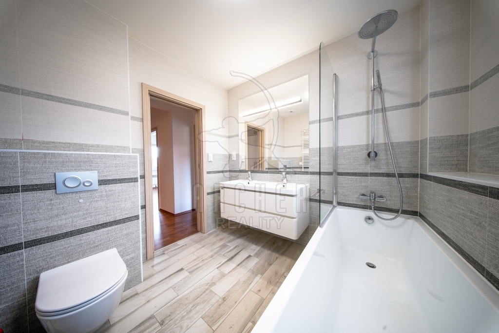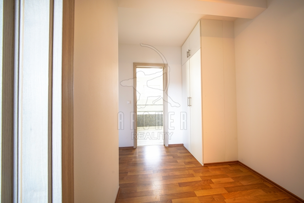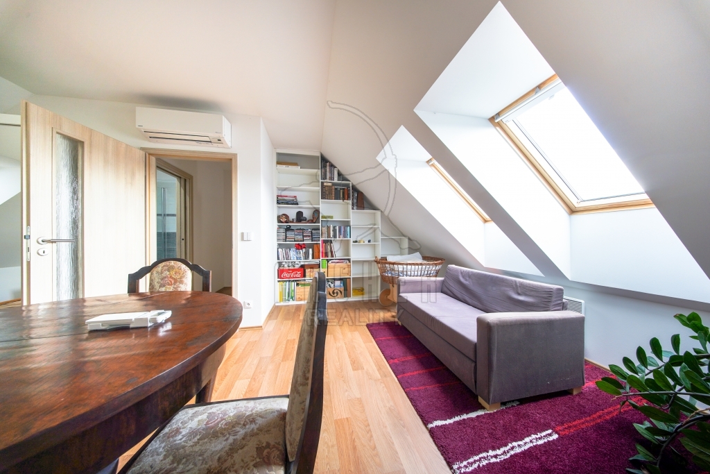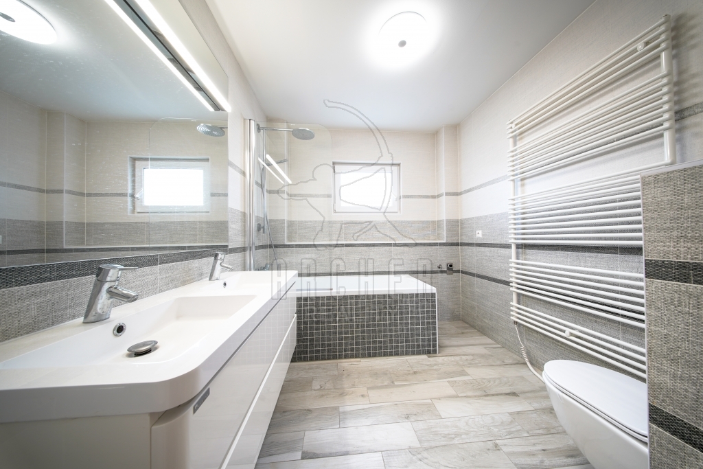 V prvním patře jsou dvě ložnice a velká koupelna s vanou, WC a dvěma umyvadly, aby rána probíhala v pohodě a komfortu. Praktická je vestavěná skříň na chodbě, která využívá volné místo. Ve druhém patře je pak poslední z ložnic, která slouží i jako obývací pokoj. I v tomto patře je koupelna se sprchovým koutem a WC. Vše završuje prostorná půda, která slouží pro odkládání věcí. Dům je tak velmi příjemný k bydlení a vše podtrhuje klimatizace dostupná v prvním a posledním nadzemním podlaží.
