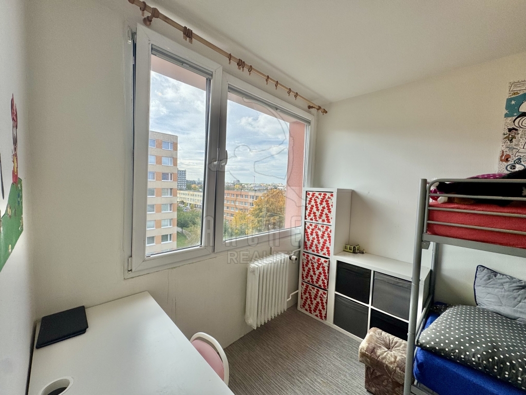 Vedle obývacího pokoje je ložnice vybavená palandou, úložným systémem Ikea a psacím stolem v bílé barvě. Pokoje jsou prosvětlené ze západní strany velkými plastovými okny s dvojskly.