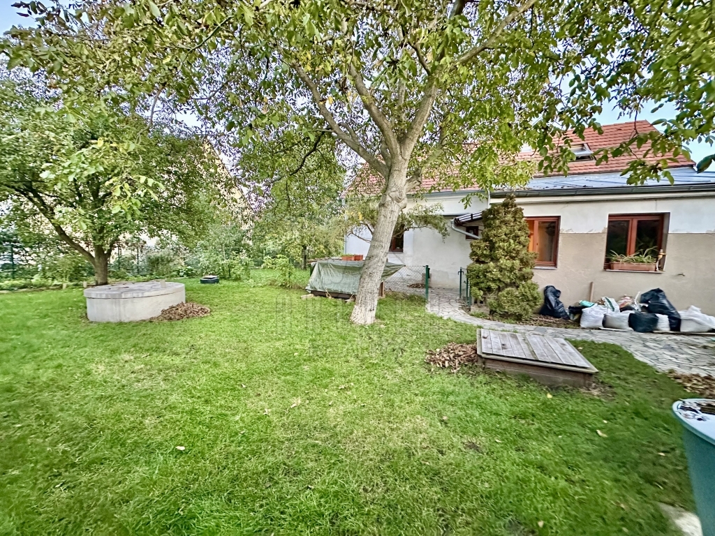 Dominantou domu je zahrada s vzrostlými stromy a vlastní studnou, která nabízí dostatek soukromí i místa pro rodinné posezení, dětské hry nebo zahradničení. Díky ideální orientaci a členění působí zahrada klidně a příjemně v každém ročním období.