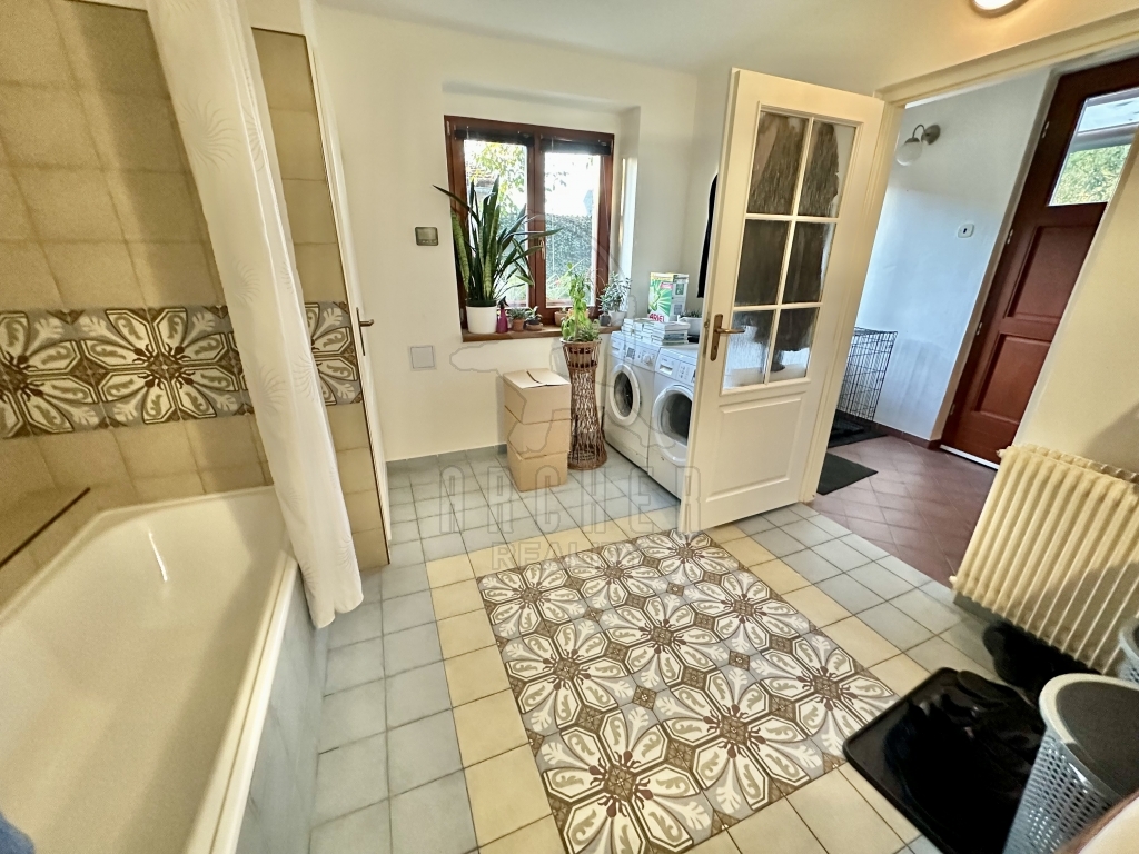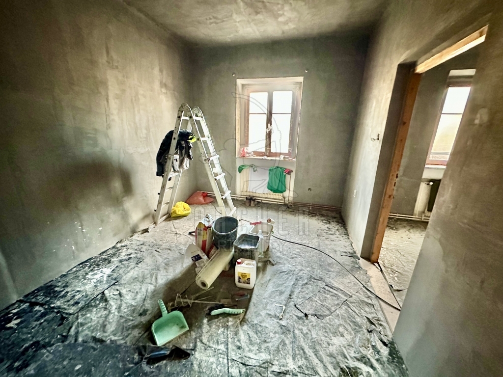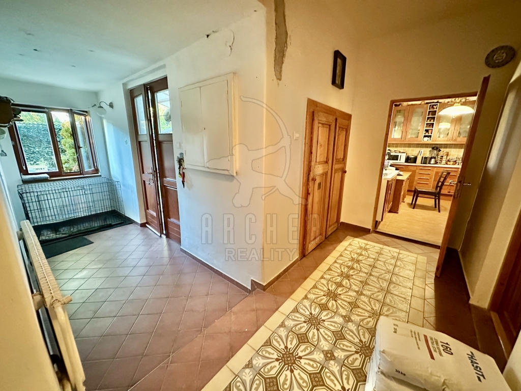 Dům prochází citlivou rekonstrukcí, která bude dokončena původním majitelem tak, aby spojila tradiční charakter starší zástavby s moderním komfortem. Po vstupu vás přivítá světlá chodba s dlažbou v retro stylu, která propojuje všechny části domu – praktickou kuchyni, koupelnu s vanou a další obytné místnosti. V podkroví dva pokoje s dřevěnými trámy, ideální pro ložnice, pracovnu, ateliér nebo pokoj pro hosty.