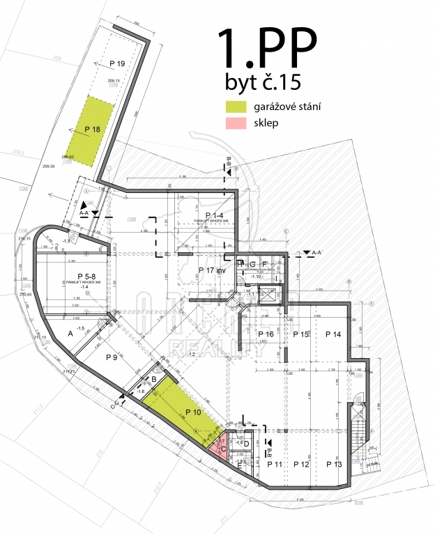 Byt č. 15 se nachází v 4.NP, v ceně je zahrnuta lodžie, sklep, vnitřní garáž a venkovní parkovací místo.