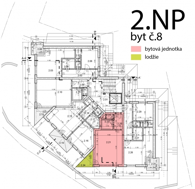 Byt č.8 se nachází v 2.NP, v ceně je zahrnuta lodžie a vnitřní parkovací místo.