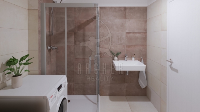 Interiér působí elegantně a čistě díky keramickým obkladům La Ceramica ICON v odstínech black a silver, dlažbě Factory grey 60×60 cm a bílým malbám. Kvalitní interiérové dveře SOLODOR i bezpečnostní vstupní dveře podporují pocit bezpečí a pohodlí. Dřevěná okna s trojsklem EURO zajišťují skvělou tepelnou izolaci. Vytápění celého domu i ohřev vody je řešeno úspornou centrální plynovou kotelnou pro všech 16 jednotek.