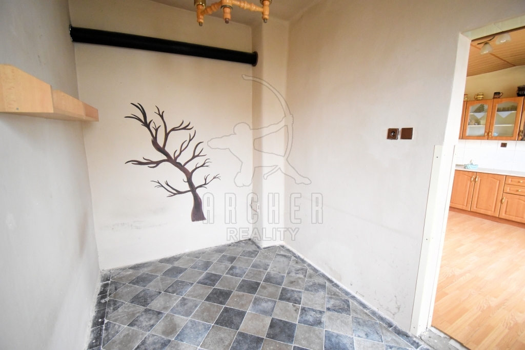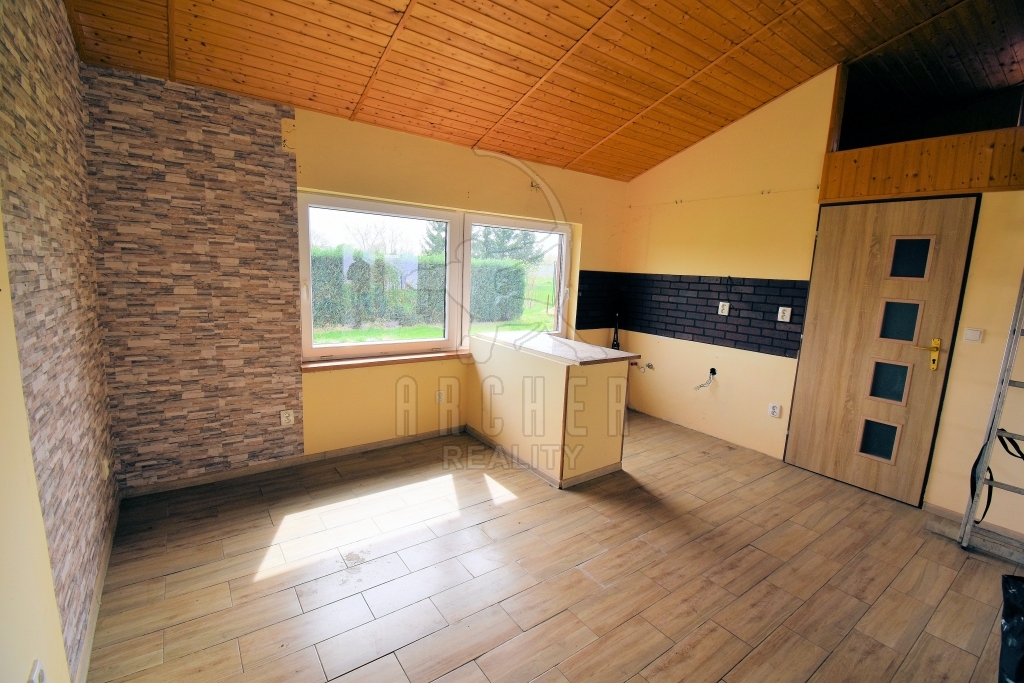 První dům má dispozici 2+1 a je určen k rekonstrukci dle vlastních potřeb nového majitele. Sestává ze dvou průchozích pokojů a kuchyně, koupelny se sprchovým koutem a toaletou. V domě plastová okna opatřena vnitřními roletami, v kuchyni podlaha plovoucí lamino, v pokoji dřevěná prkna. Střecha i krov v dobrém stavu. Možnost rozšíření obytného prostoru půdní vestavbou. Vytápění domu zajišťují krbová kamna, ohřev vody bojlerem. V domě připraveny rozvody topení včetně radiátorů, nutno jen napojit zdroj vytápění.
