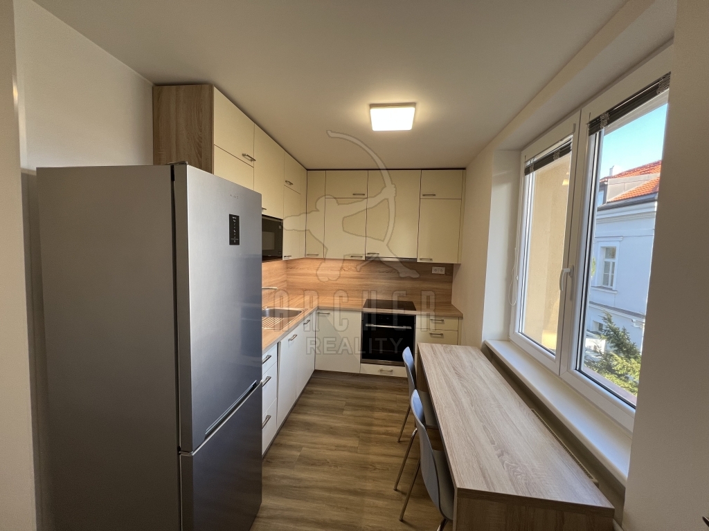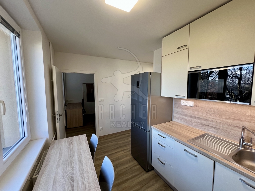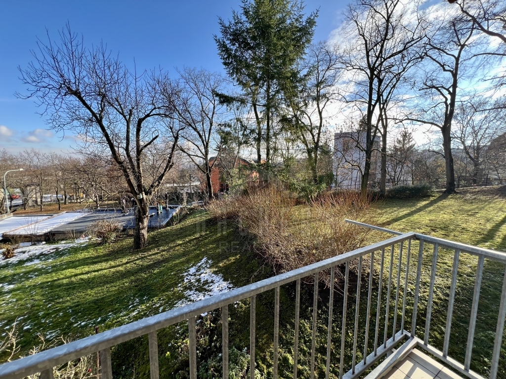 Ze společných prostor vstupujeme do podlouhlé chodby, která poskytuje příjemné zádveří, zároveň slouží jako přirozená komunikační tepna mezi všemi místnostmi. Všechny místnosti jsou orientované na východ a nabízejí krásný výhled do zahrady. Jsou plně vybavené a uzpůsobené pro obývání čtyřčlennou rodinou. Jedna z ložnic s pracovnou má samostatný vchod, do druhé se dostaneme bočními dveřmi skrze kuchyni. Zde je navíc k dispozici balkon jako stvořený pro relaxaci uprostřed klidné, zelené čtvrti. Kuchyně je plně vybavena všemi moderními spotřebiči, disponuje jídelním koutem přímo u okna. Byt prošel kompletní rekonstrukcí v roce 2019, v jejímž rámci byla provedena výměna elektrického vedení, voda je v plastu. Byt se prodává včetně veškerého vybavení, takže se lze nastěhovat pouze s kartáčkem na zuby, případně obratem pronajmout. K bytu náleží sklep (1,7m2), stejně jako podíl na krásné zahradě se vzrostlými stromy a podíl na objektu bývalé kotelny.