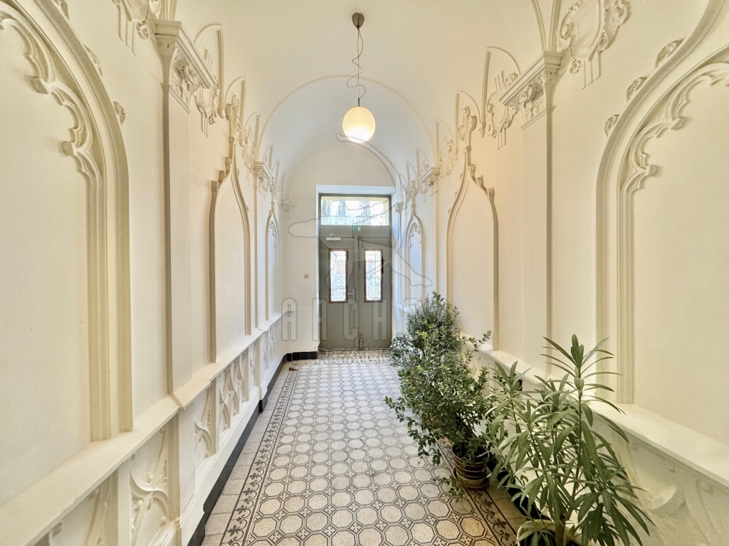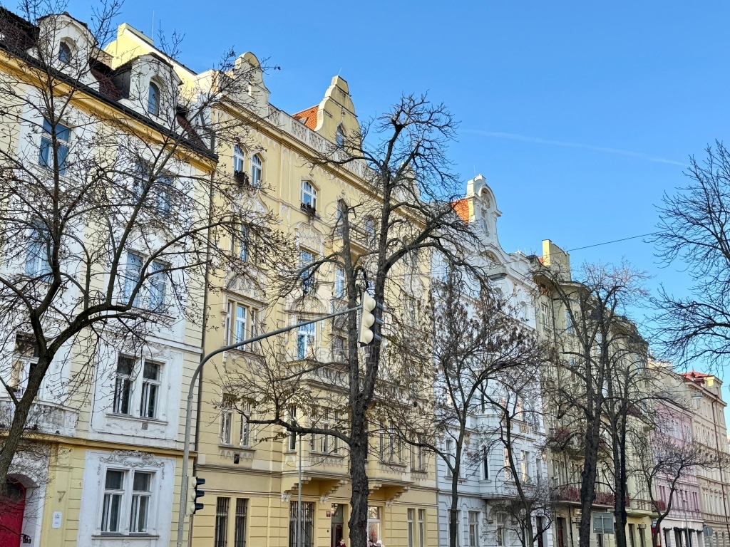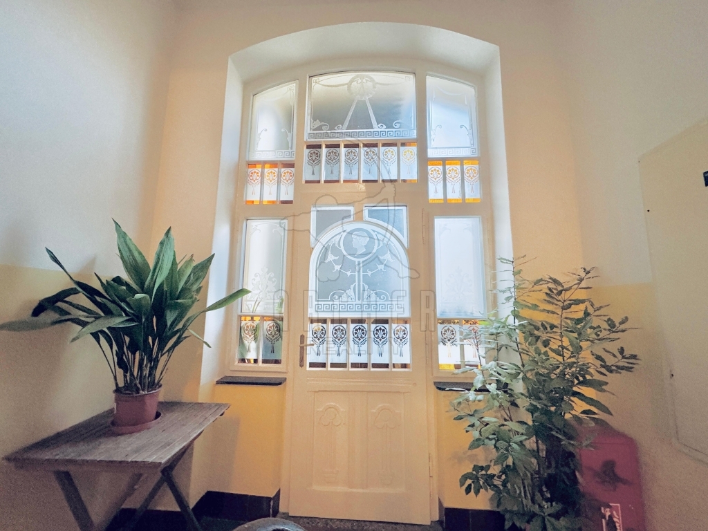 Pěkný byt s okny do klidného dvora v renovovaném secesním domě nedaleko Letenského náměstí. Vstupní chodba domu je bohatě zdobena secesními štuky, domovní schodiště je prosvětleno členěným oknem s ornamentálními vzory na leptaném skle.