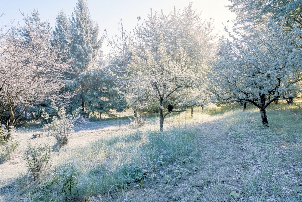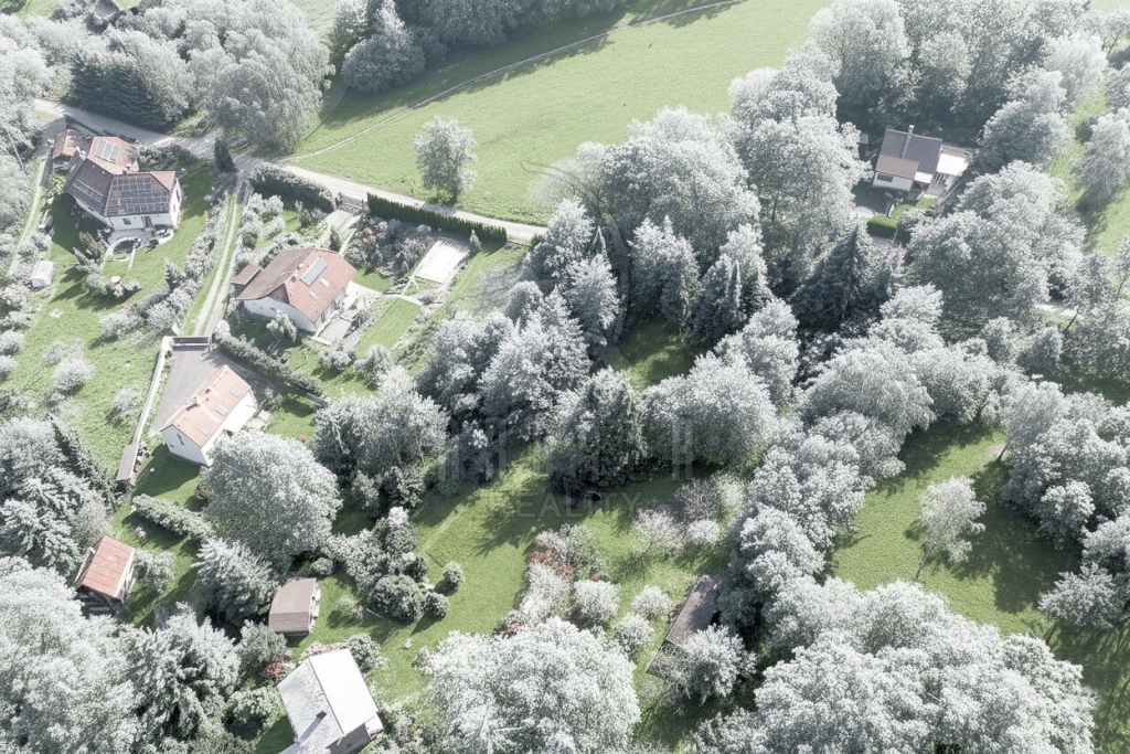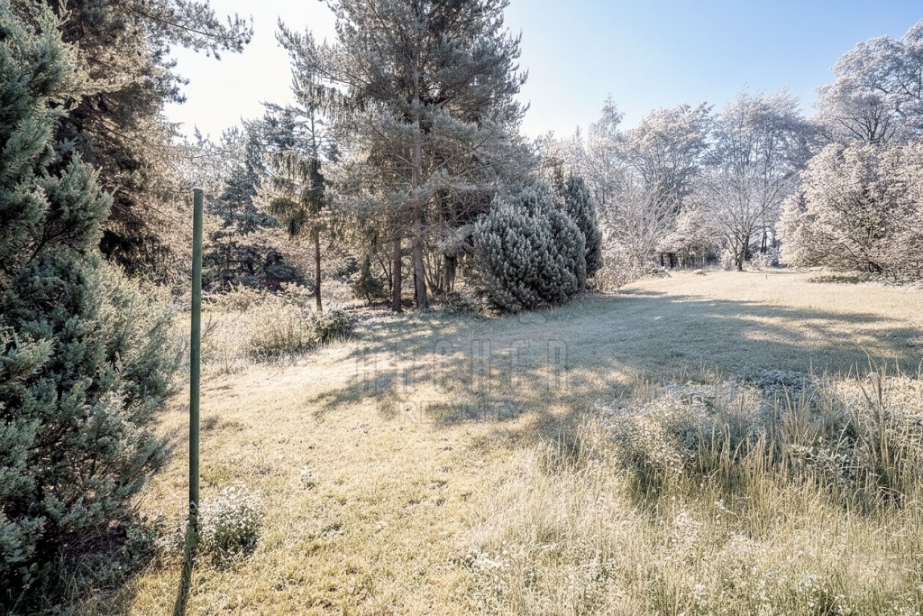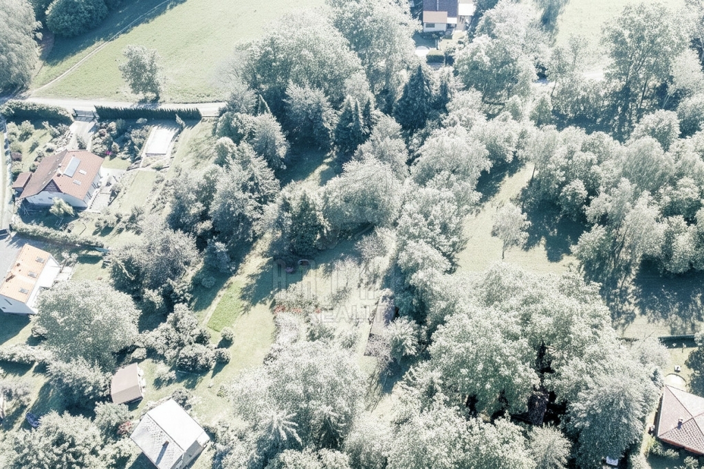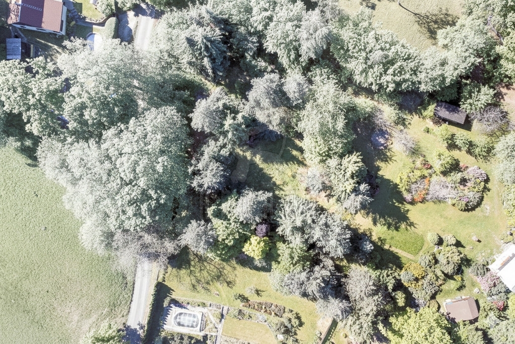 Pozemek leží na okraji obce, na mírném návrší, v sousedství rodinných domů a zároveň jen pár kroků od lesů, luk a rybníků. Už při první návštěvě cítíte příjemnou atmosféru – část pozemku působí jako ovocný sad, druhá nabízí charakter divočejší přírody. Díky vzrostlým stromům, jehličnanům, rododendronům, borůvčím i keřům vzniká jedinečné prostředí, které budoucímu majiteli umožní tvořit zahradu s využitím stávající, pečlivě udržované vegetace.