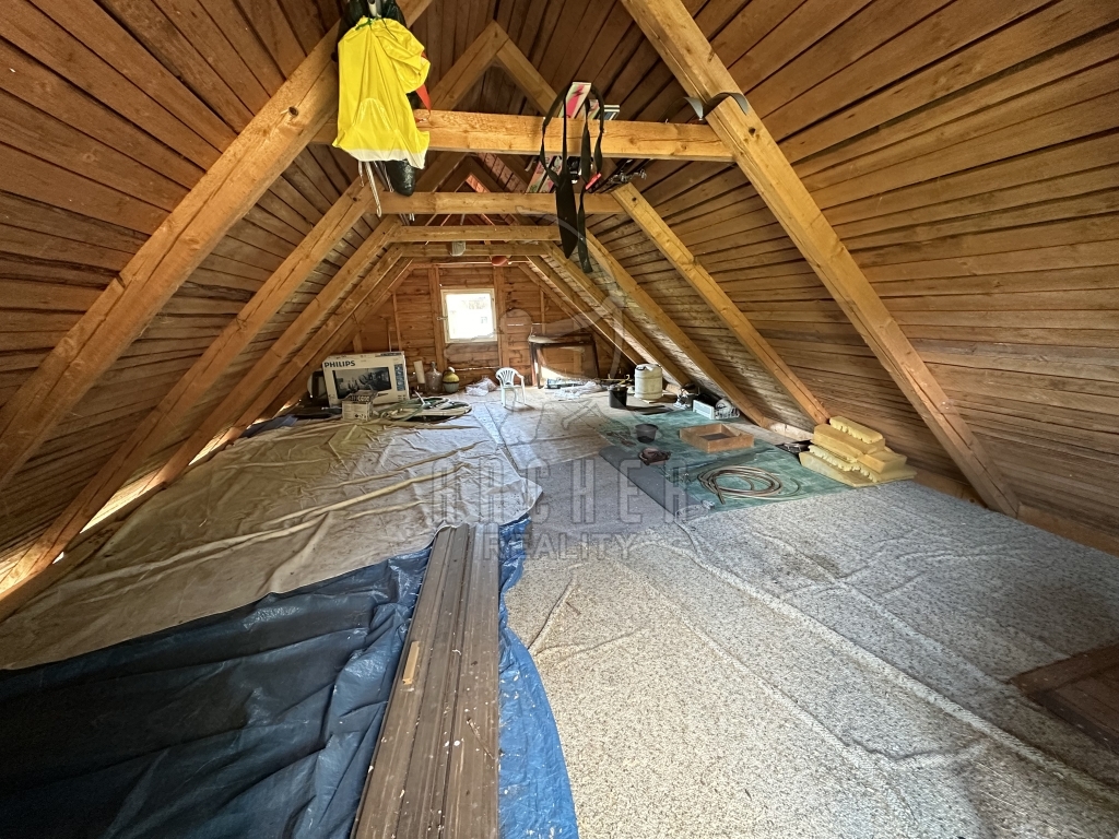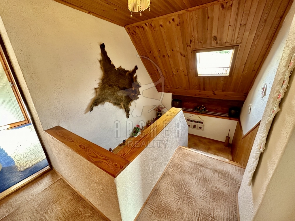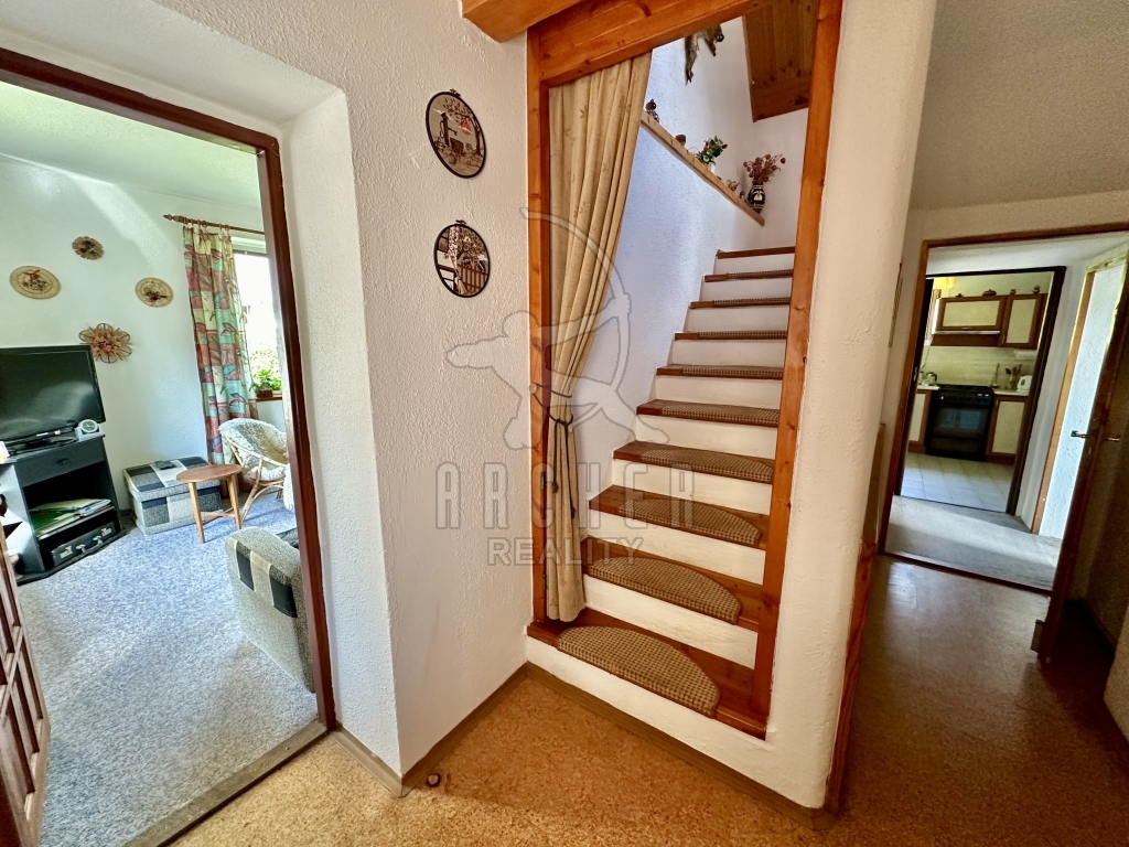 Dům samotný je ve velmi dobrém stavu, udržovaný. Díky ideálnímu umístění domu (kuchyň a jídelna směřují do zahrady, propojené fr. oknem a další dva pokoje do stran s výhledem) je bezvadně klidný a intimní. Pohledy do příjemně zařízené zahrady s posezením, jezírkem, klasickou studnou nejsou rušeny okolní zástavbou. Horní dva pokoje (a balkon) jsou ideální jako ložnice. Krbová kamna, ve spodním patře podlahové topení a další domyšlená řešení.