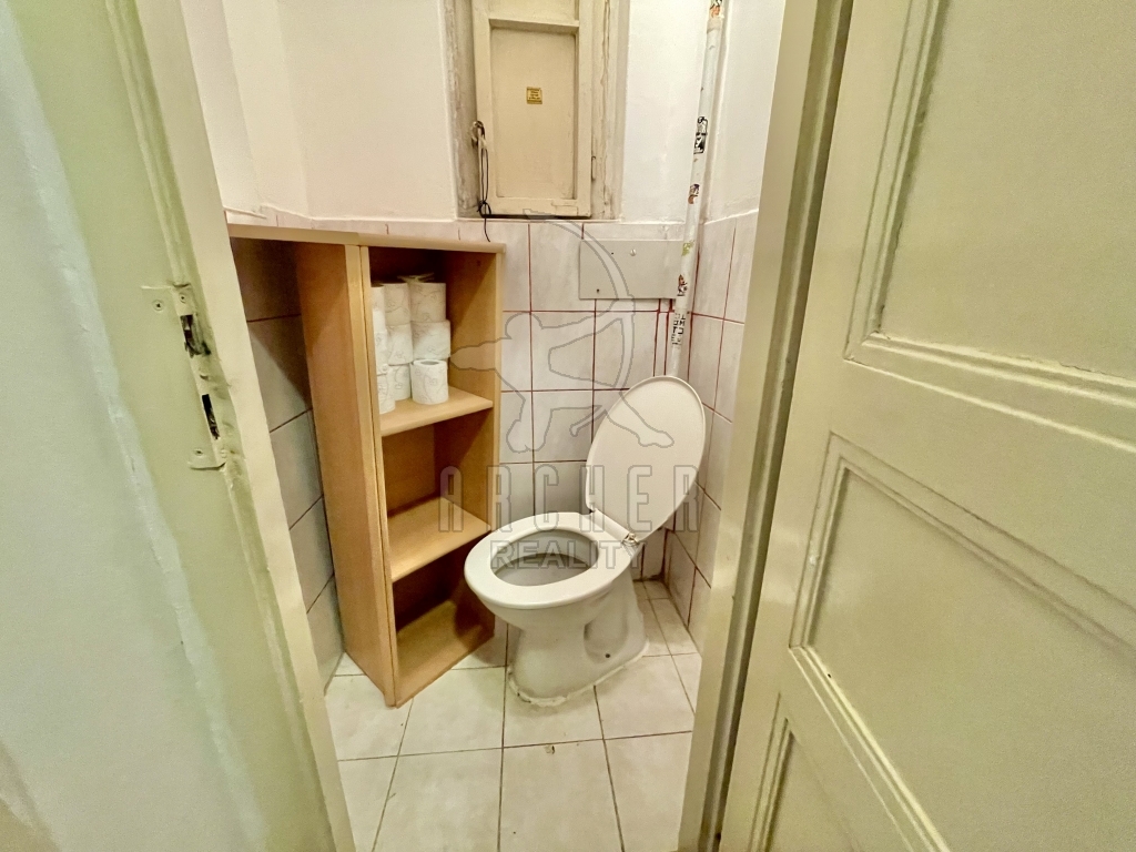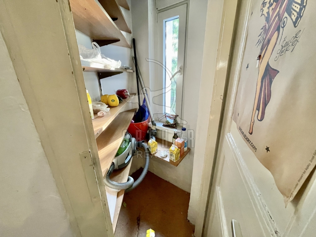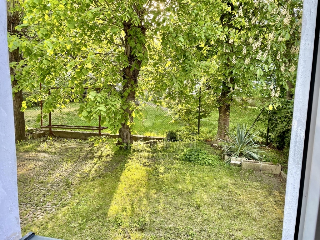 V pokoji je velké vestavěné patro na spaní s poličkami i vyvedenou elektřinou, čímž vzniká víc prostoru pro obývací pokoj a pohodlné sezení. Okno do zahrady a parku s vzrostlými stromy poskytuje dostatek světla. Na straně (ve výklenku) je kuchyň a naproti je malá komora s vlastním oknem. Z pokoje jsou dveře do samostatné koupelny s dostatkem místa. Úložné prostory - vestavěná velká skříň na chodbě účelně dotváří příjemný vstup z předsíně do pokoje nebo na samostatnou, nově osazenou toaletu.