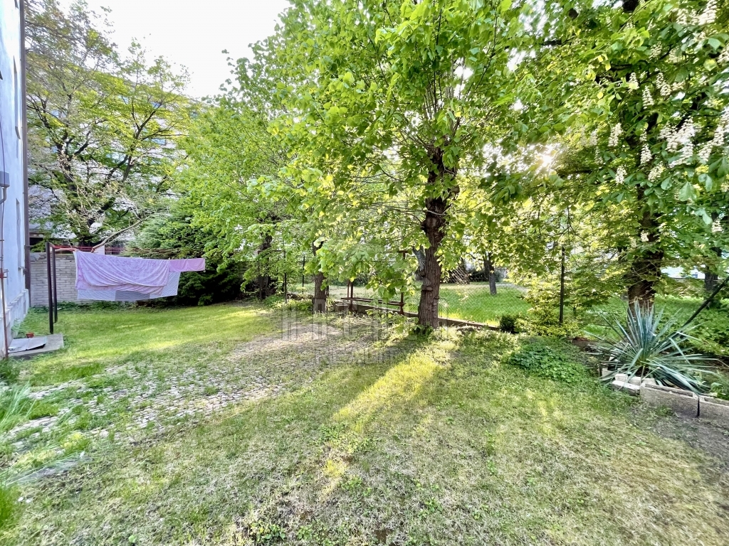 Byt se nachází v nízkém třípatrovém domě s vlastní zahradou v klidném prostředí, přesto blízko na metro.