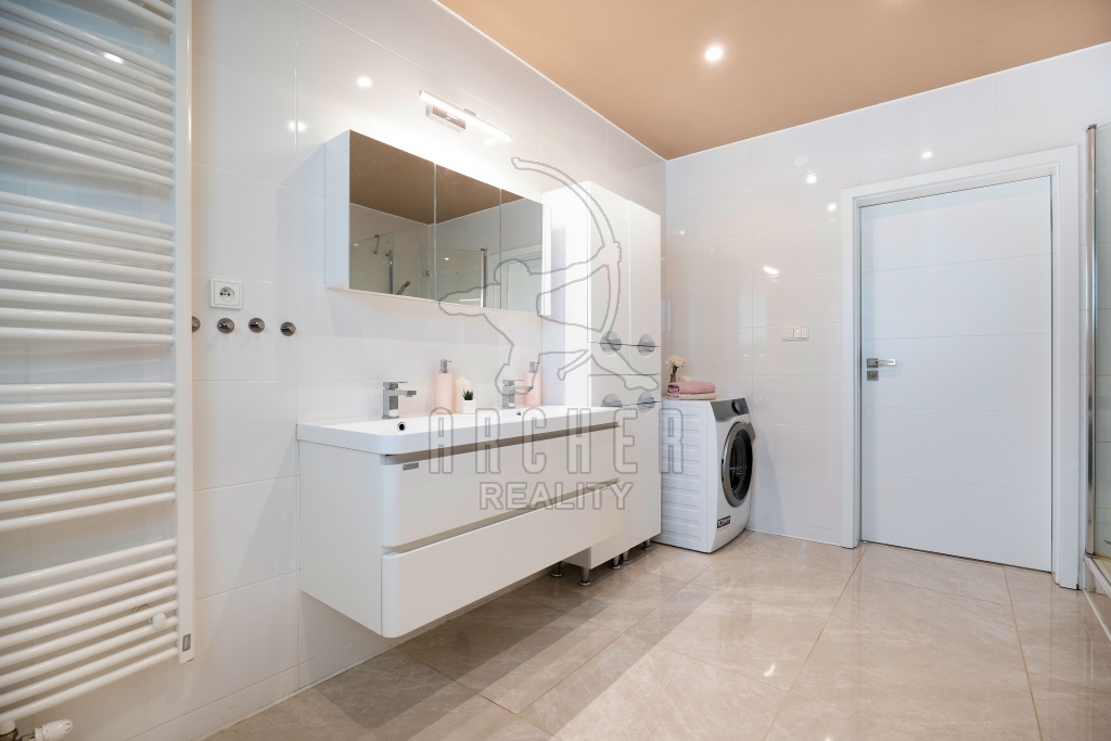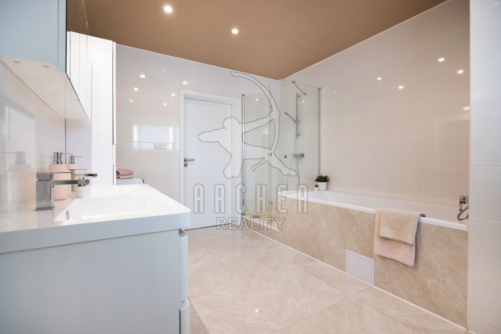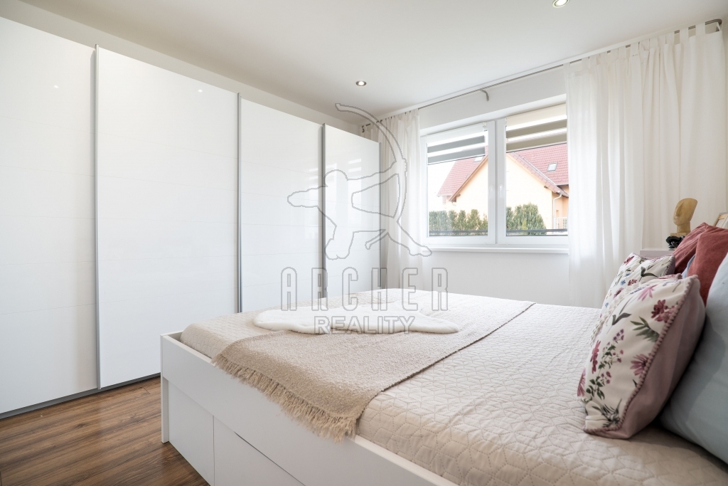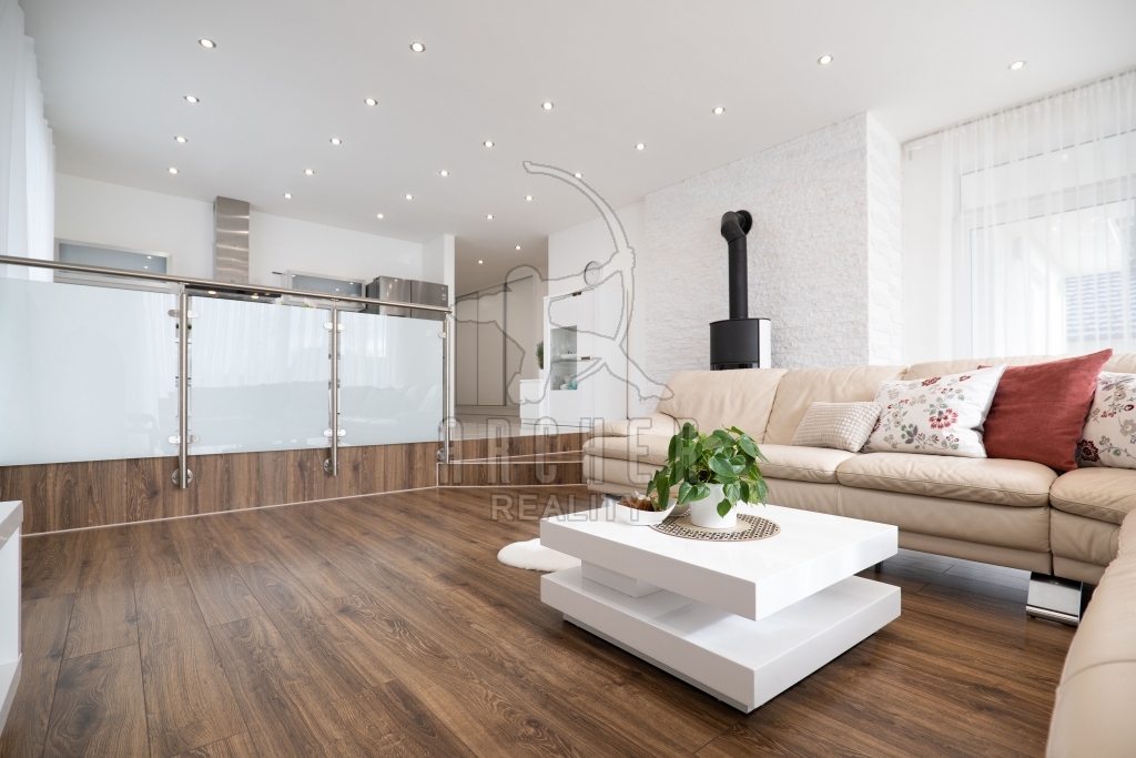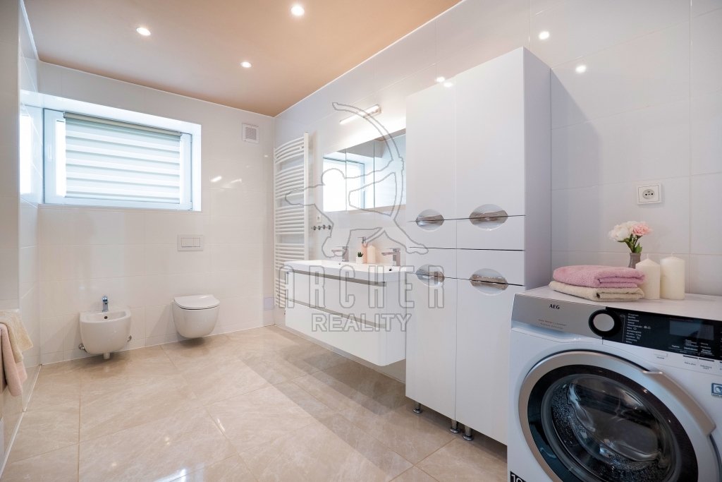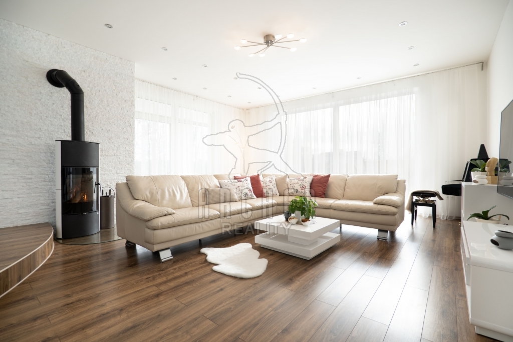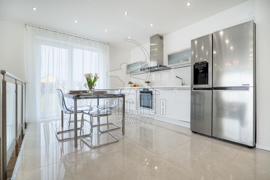 | Popis vybavení domu | Kuchyňská linka vč. elektro spotřebičů (sklokeramická deska, elektrická trouba, digestoř, myčka, lednice s mrazákem), vestavěné skříně, nábytek po dohodě. |