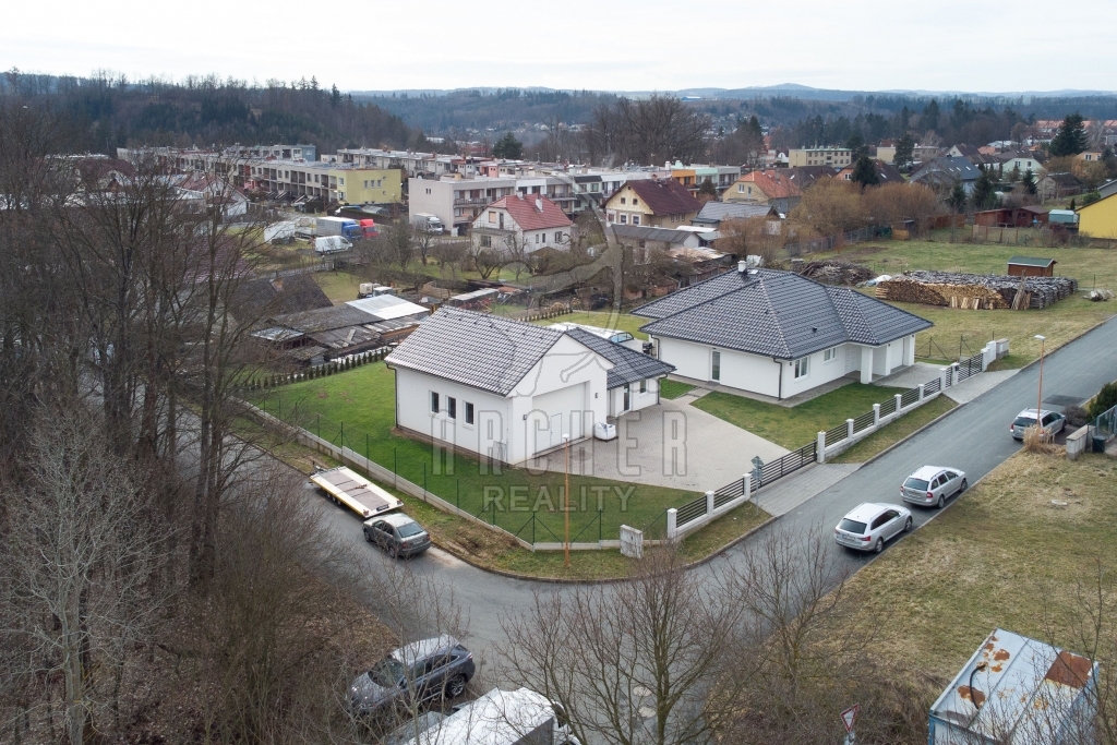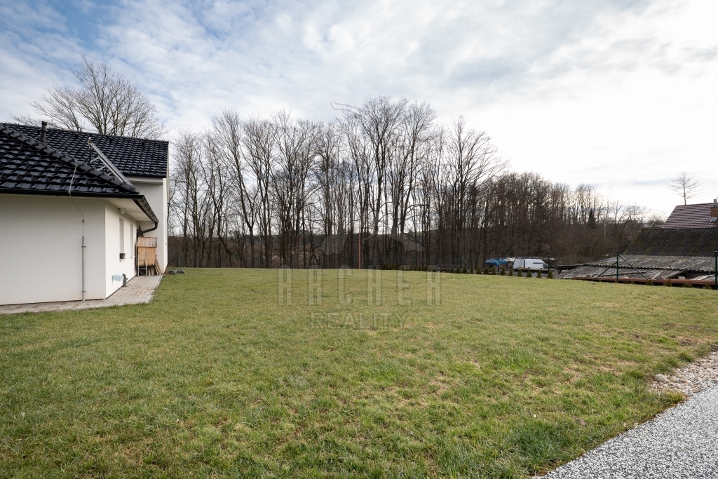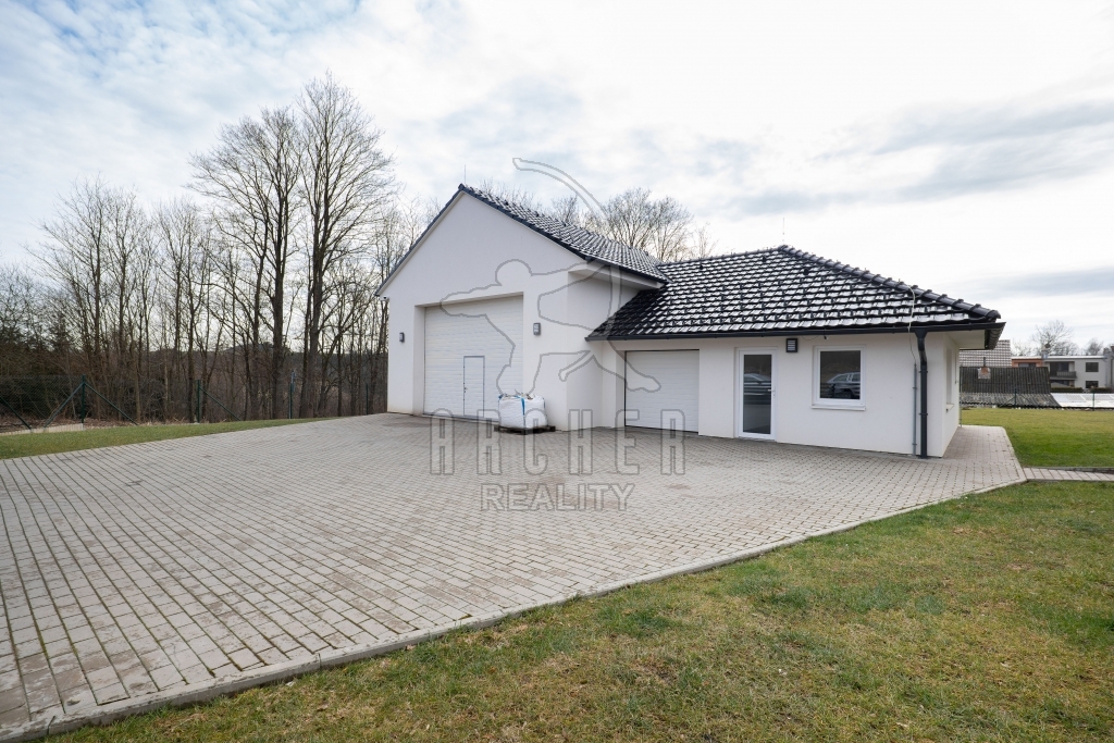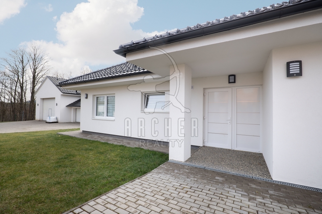 Nabízíme k prodeji RD typu bungalov, 4+kk (105,6 m2) s terasou (52 m2),s garáží (22,9 m2),závětřím (3 m2),extra dvojgaráží (112 m2),celkem 295m2, na pozemku 1632 m2, Zruč n/ Sázavou, ul. Nad Ovčínem.