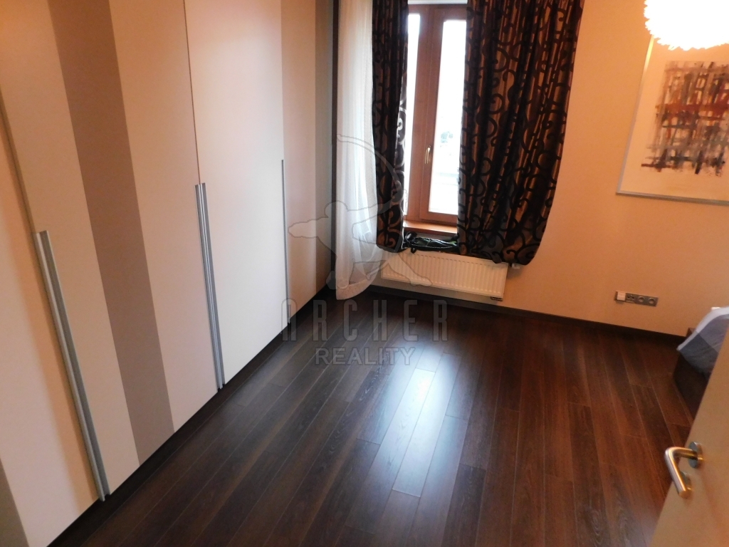 Byt zaujme atypickým, originálním interiérem, inspirovaným dílem Pieta Mondriana a designovým vestavěným nábytkem na míru, který je zahrnutý v ceně bytu.