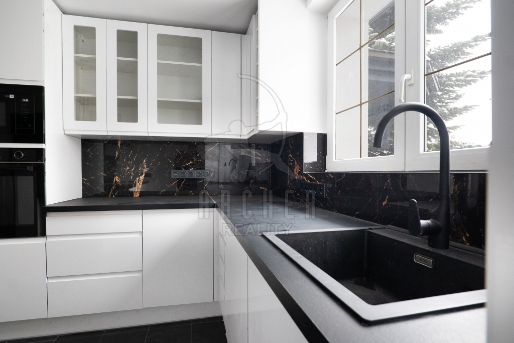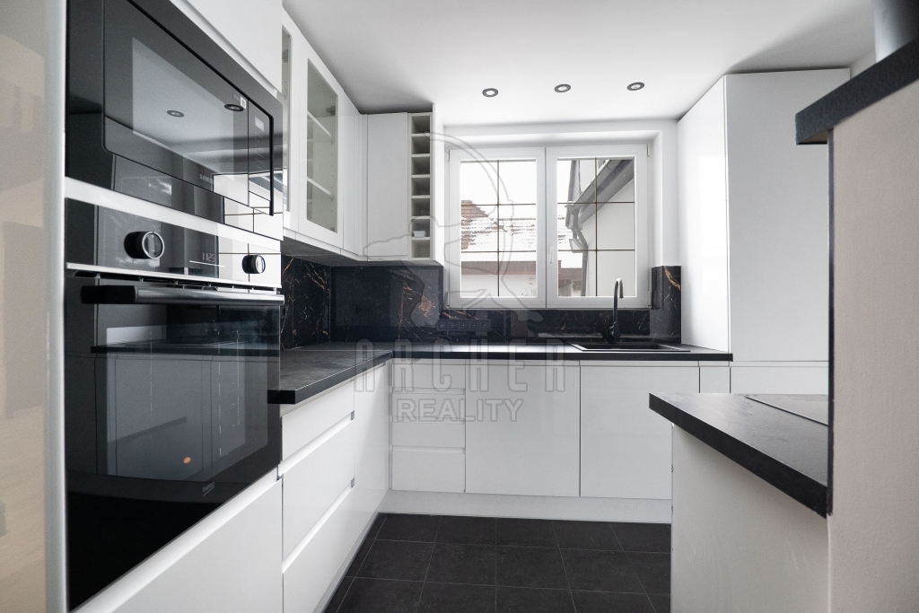 | Popis vybavení domu | Kuchyňská linka vč. elektro spotřebičů (indukční deska, elektrická horkovzdušná trouba, mikrovlnka, myčka, vestavěná lednice s mrazákem, digestoř) |