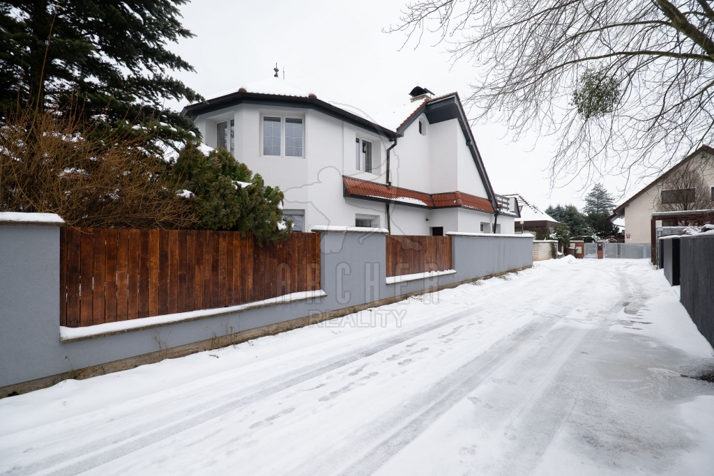 Prostorný rodinný dům 6+1 s terasou (299 m2), dvojgaráží (41 m2), celkem 340 m2, s udržovanou zahradou, na pozemku 730 m², po rekonstrukci, v žádané a klidné lokalitě Prahy 12 – Točné, ul. Ke Spálence