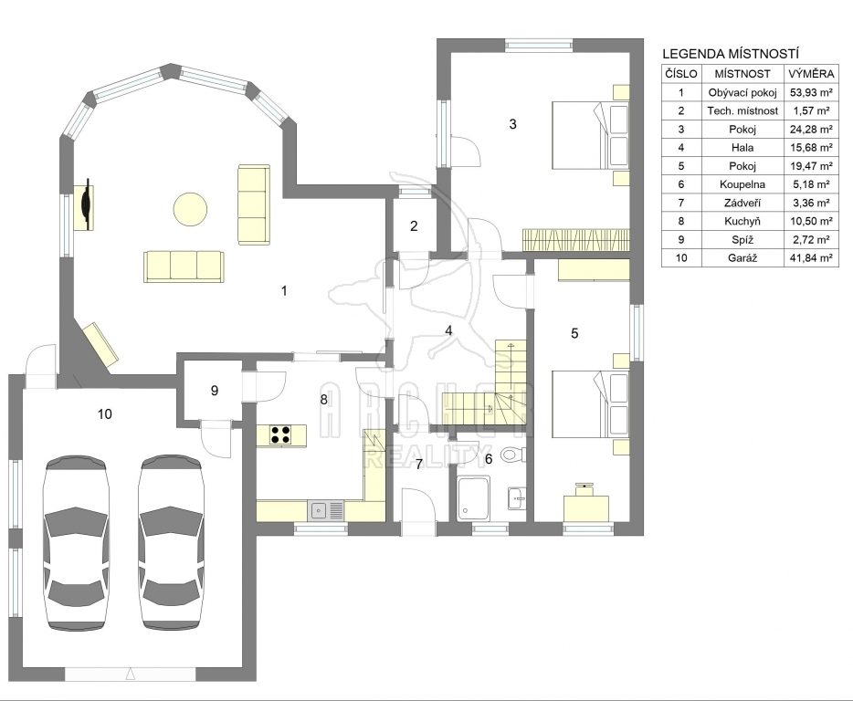 Velkým benefitem prostorná dvojgaráž (42 m2) a 1 venkovní parkovací místo.