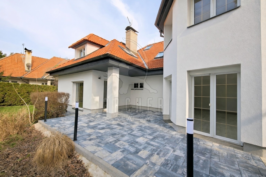 Prostorný rodinný dům 6+1 s terasou (299 m2), dvojgaráží (41 m2), celkem 340 m2, s udržovanou zahradou, na pozemku 730 m², po rekonstrukci, v žádané a klidné lokalitě Prahy 12 – Točné, ul. Ke Spálence