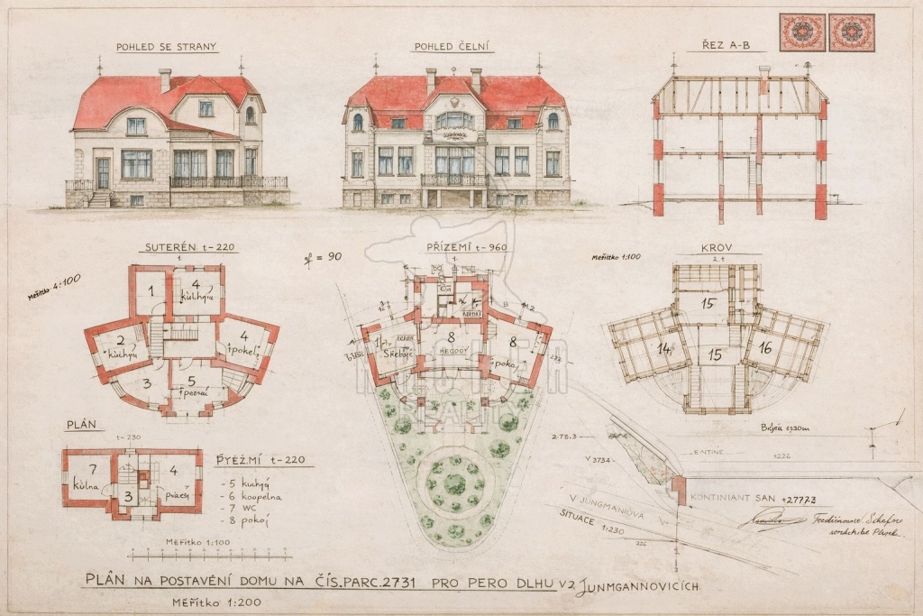 Vila je situována na nárožním pozemku v cípu ulic Rooseveltova a Jungmannova, přičemž její poloha zajišťuje jak klid, tak výbornou dostupnost. Pozemek tvoří zastavěná plocha a nádvoří o výměře 194 m2 a dvě samostatné zahrady o velikosti 170 m2 a 104 m2.