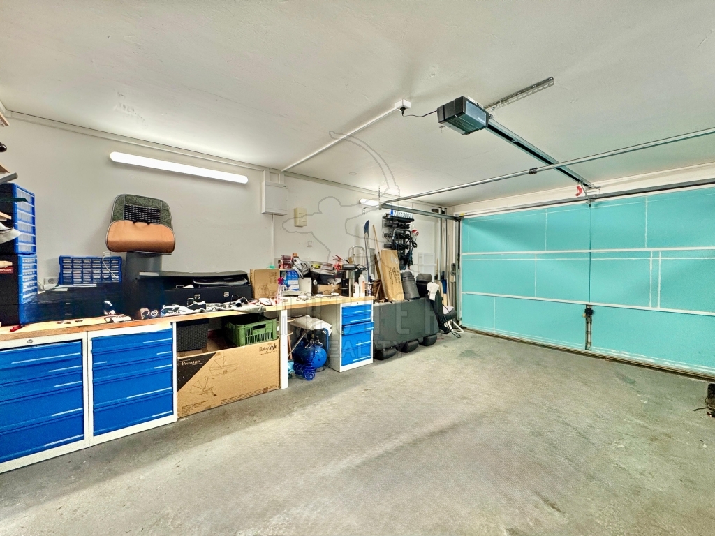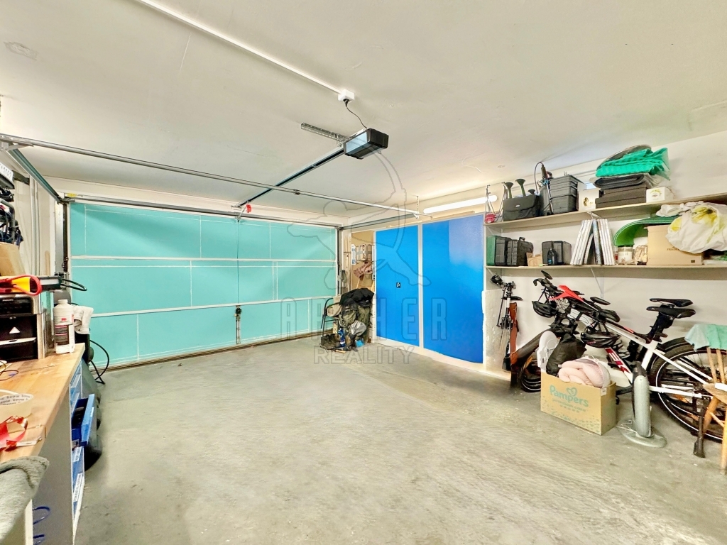 Nebytová jednotka 55m2 byla původně garáží pro 4 auta, ale přestavbou je rozdělena na vybavenou univerzální místnost a na dvojgaráž s velkými vraty. Vše má vytápění, je zde umyvadlo, sprcha, rozšířená elektroinstalace a LAN připojení.