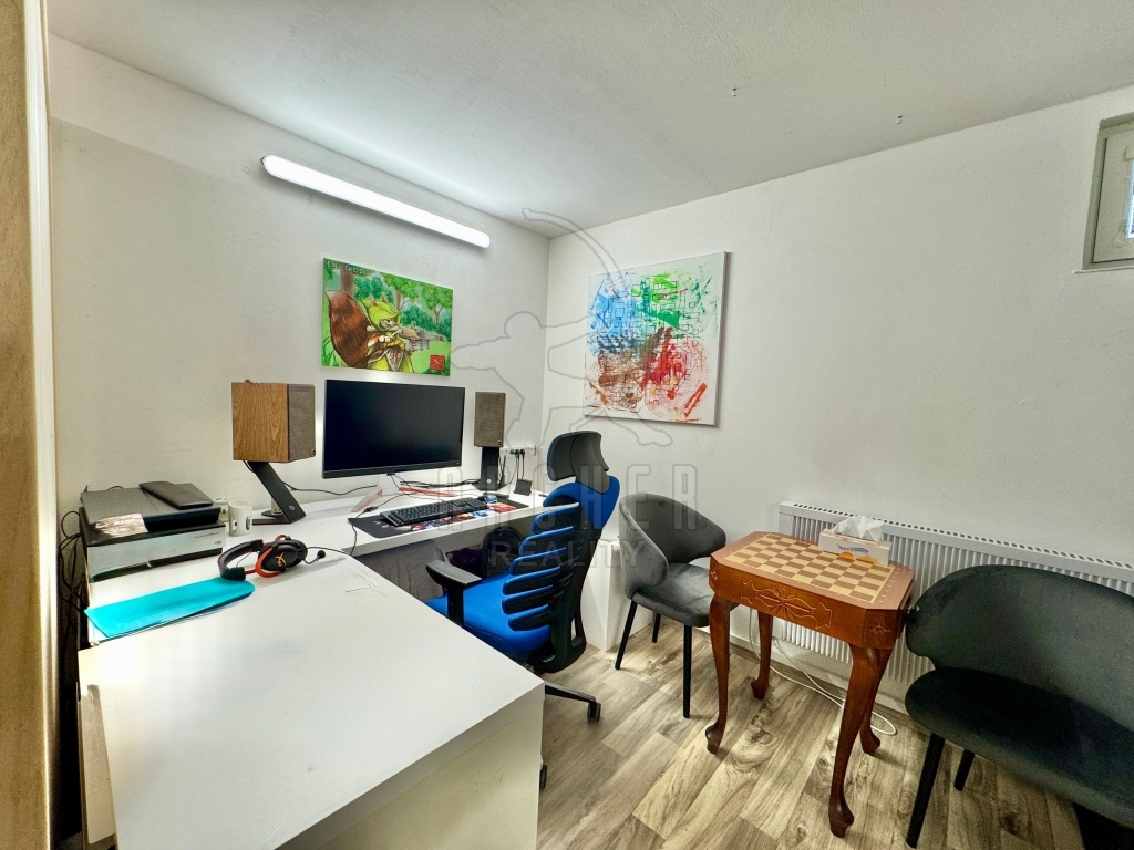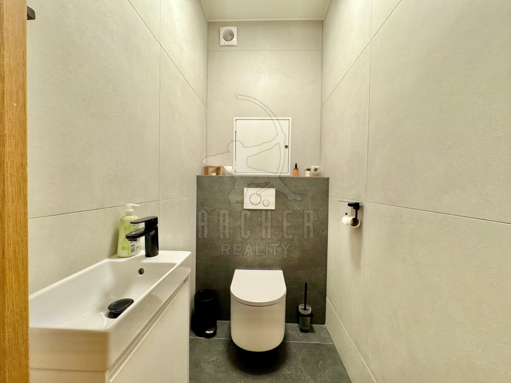 Moderní světlý byt 4+kk 86m2 je rozšířen o nebytovou jednotku 55m2 pod bytem v přízemí. Příjemné bydlení s výhledem na louku a dojezdem 20 min. do centra Prahy je kombinováno s vybaveným prostorem 55m2, přístupným dvougaráží a z druhé strany vstupními dveřmi z domovní chodby do univerzálního prostoru, nyní vybaveného část jako pracovna a část jako fitness se saunou a sprchou. Tuto část je možno užívat také jako kancelář, dílnu, kosmetický salon, fyzioterapeutickou praxi apod..