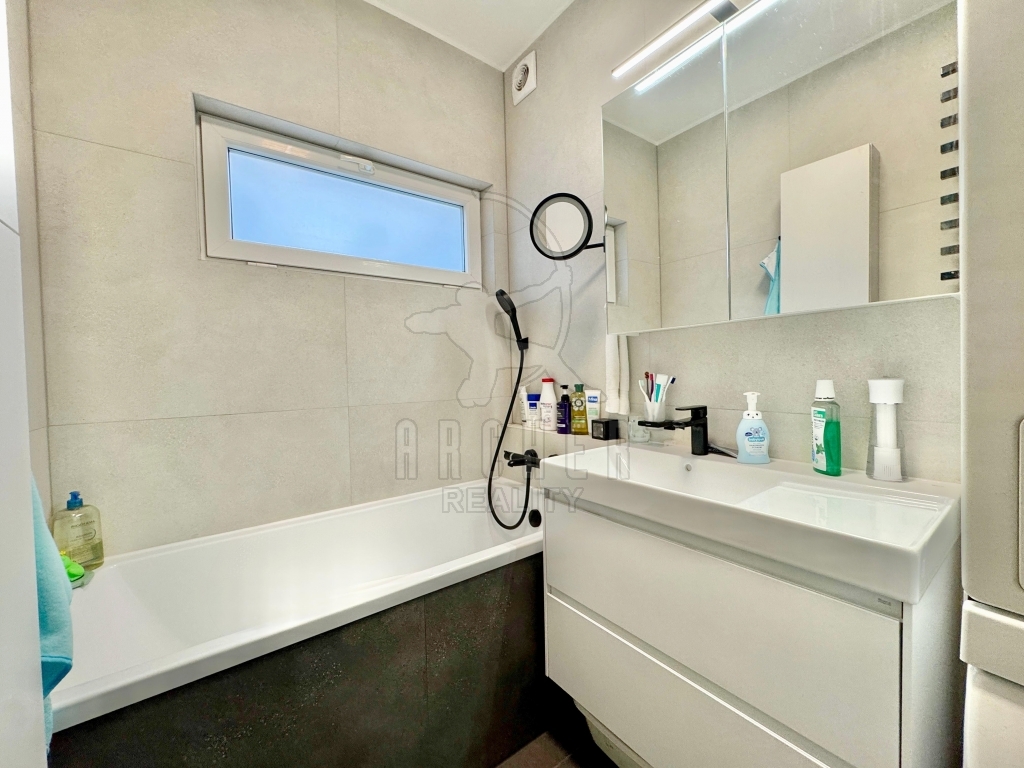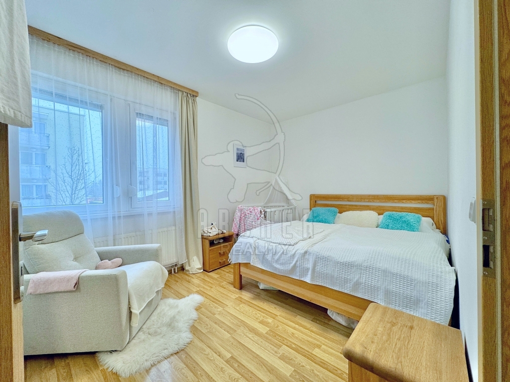 Byt prošel nadstandardní modernizací – designová kuchyňská linka z roku 2022, luxusně zrekonstruovaná koupelna a samostatná toaleta (2024), vestavěné skříně se zrcadlovými dveřmi a bezpečnostní protihlukové vstupní dveře. Byt je kolaudovaný jako 3+kk, ale rozdělením první ložnice vznikly dvě místnosti užívané jako ložnice, první má 7,1m2 a druhá 9,1m2. Dále je zde prostorný obývací pokoj s kuchyní a přímým vstupem na balkon.