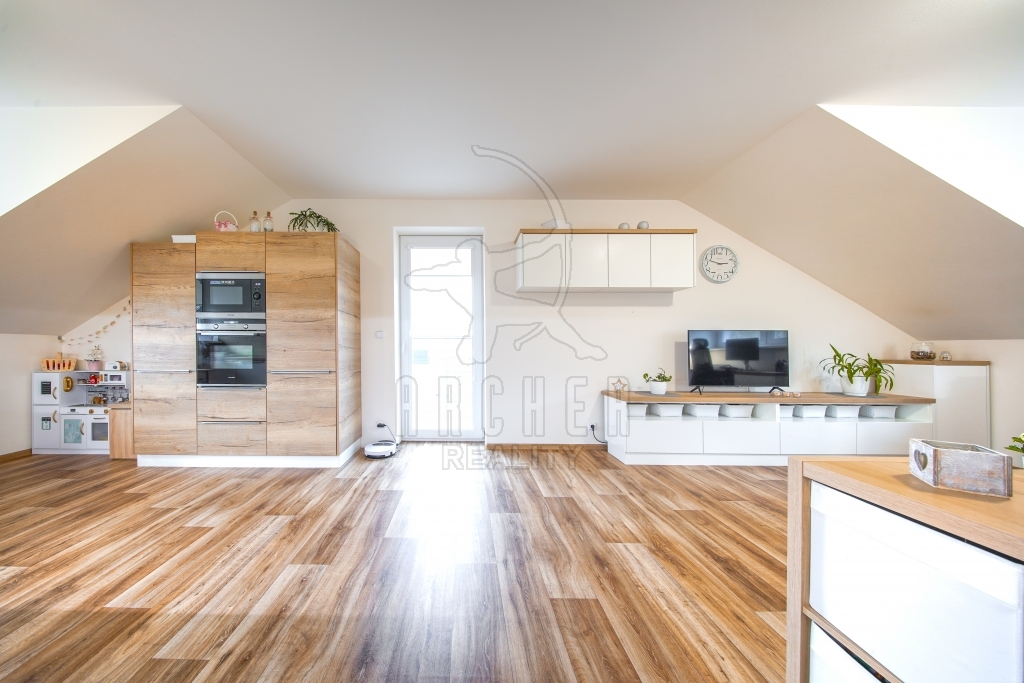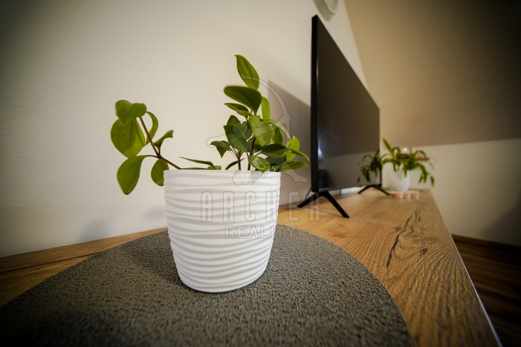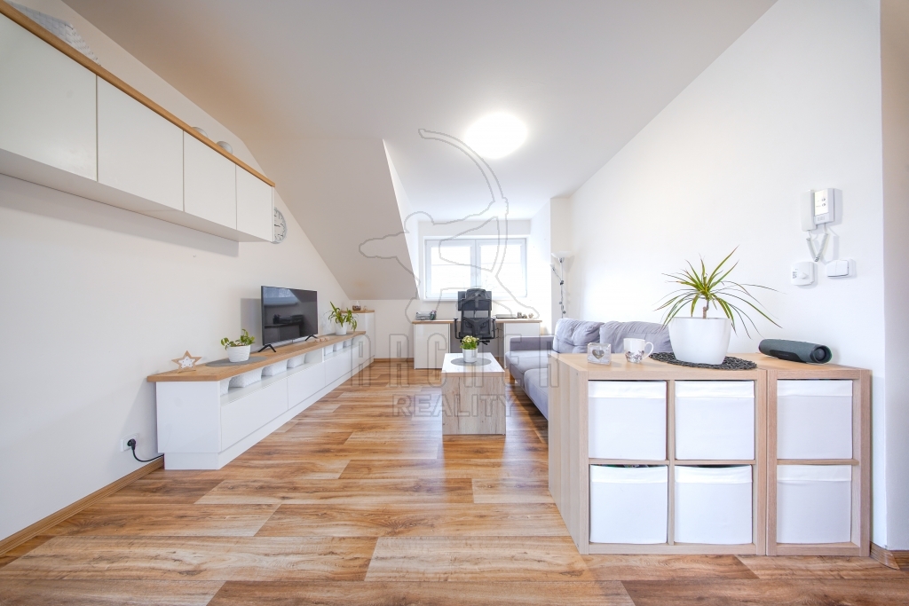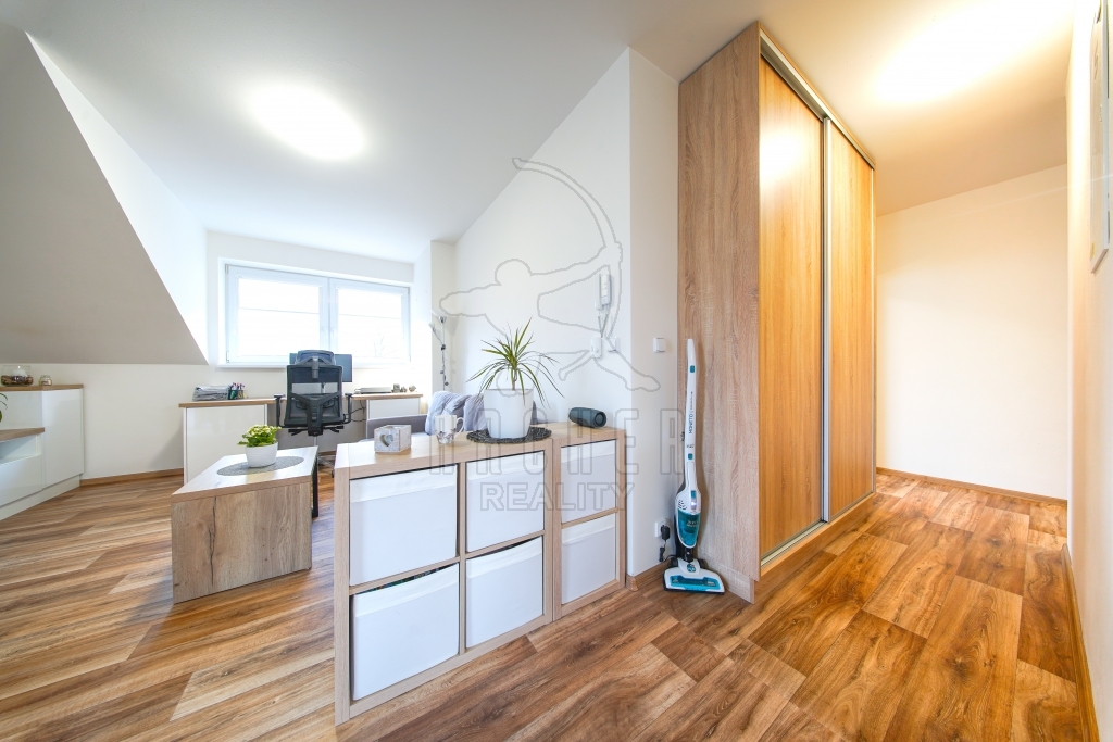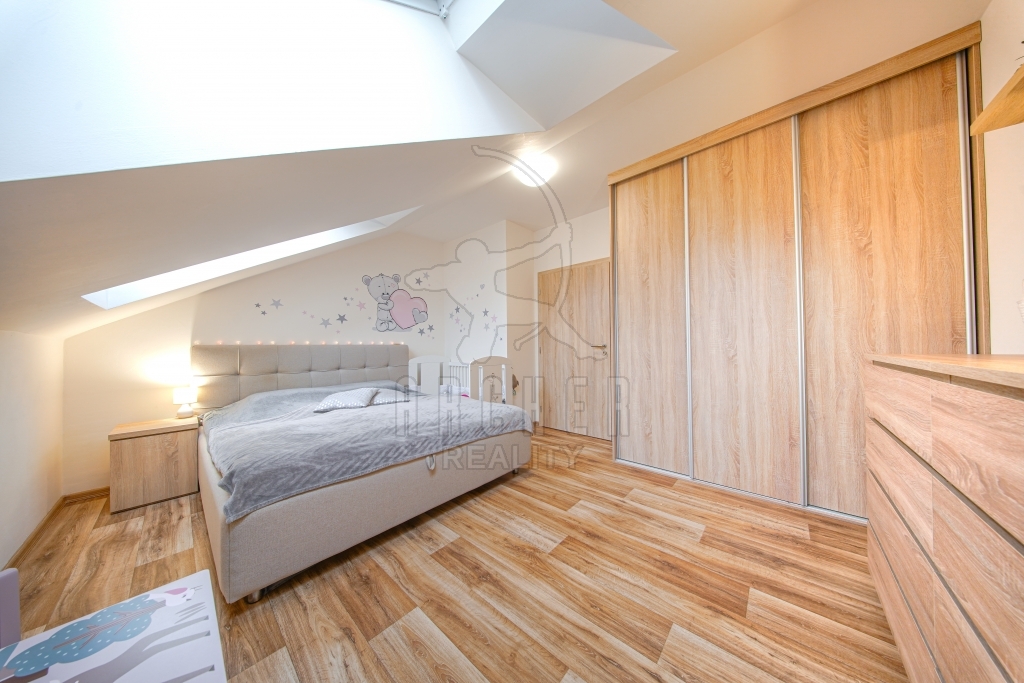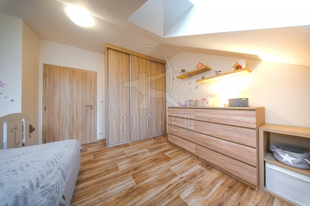 V chodbě se nachází velká skříň, která zvětšuje úložné prostory bytu, stejně jako vestavná skříň vlevo za vchodovými dveřmi. Ložnice je prostorná, je zde dvojlůžko a také velká vestavná skříň. Střešní okna jsou osazena vnějšími zatmívacími žaluziemi.