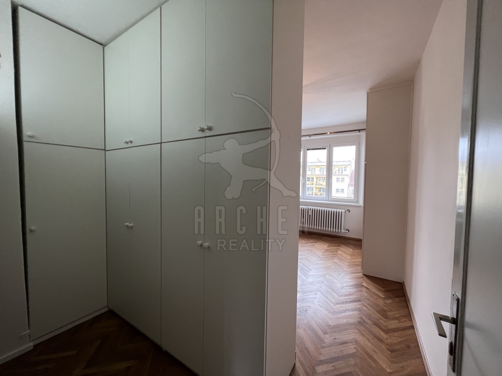 Prostorný byt s výtahem a balkonem se nachází u zastávky tramvaje před Libeňským mostem. Nabízí tři samostatné pokoje - obývací pokoj na jih do ulice, sousední ložnici a druhou na sever do klidného vnitrobloku. Ve dvou pokojích jsou pěkné dubové parkety, v předsíni dlažba. Kuchyňský kout s lednicí, elektrickým sporákem a troubou, plyn se nepoužívá. V bytě jsou dvě původní komory a šatna. Koupelna s umyvadlem a sprchovým koutem, toaleta je samostatná s velkým oknem do světlíku. V bytě i domě je elektřina v mědi. Okna jsou plastová. Na chodbě je vstup na společnou lodžii pro byty na patře. Dům z roku 1938 je postupně rekonstruován: 2018 stoupačky a odpady, terasy nad bytem - oprava a zateplení r. 2022, balkony - oprava + nová dlažba r. 2023, výtah z roku 2013.