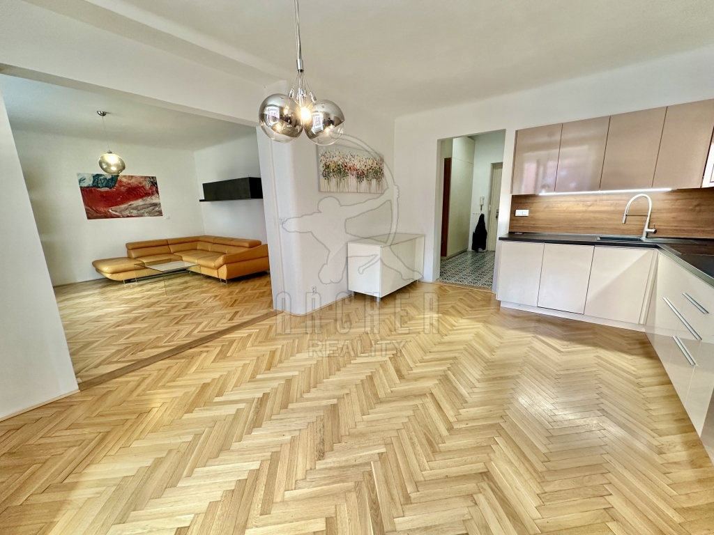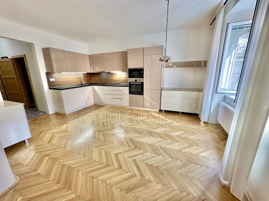 Byt po kompletní rekonstrukci se zahradou ve vnitrobloku s okny na západ plný barev.