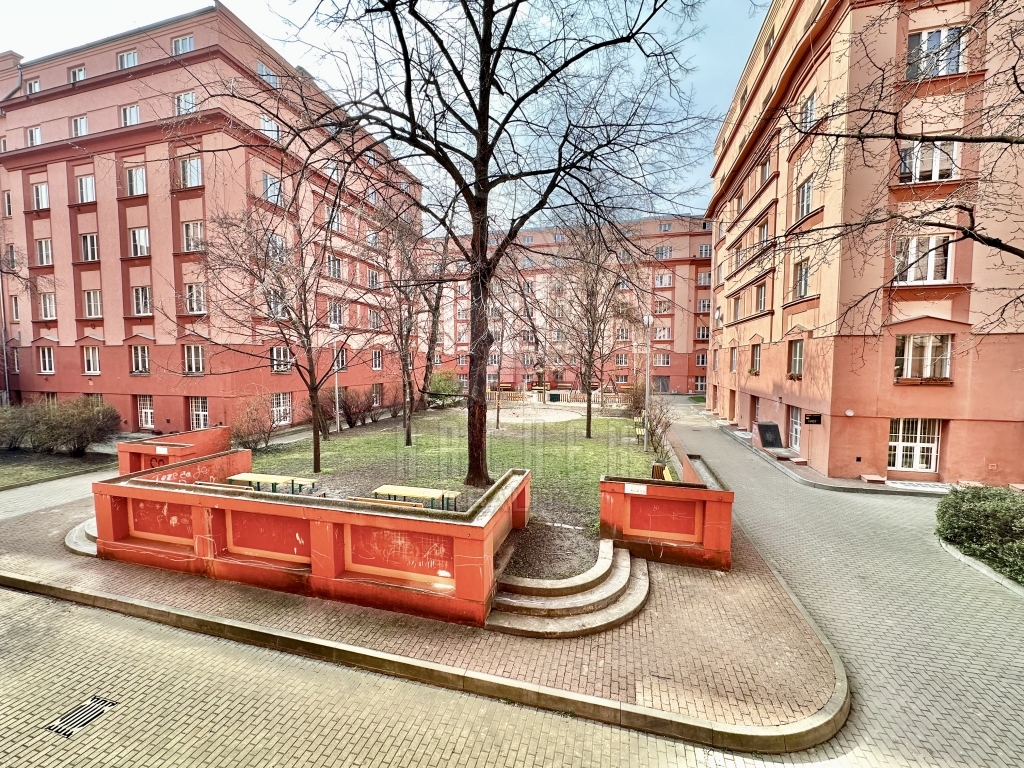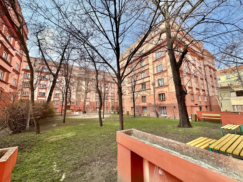 Obrovským benefitem je vnitroblok se vzrostlými stromy, posezením a klid.