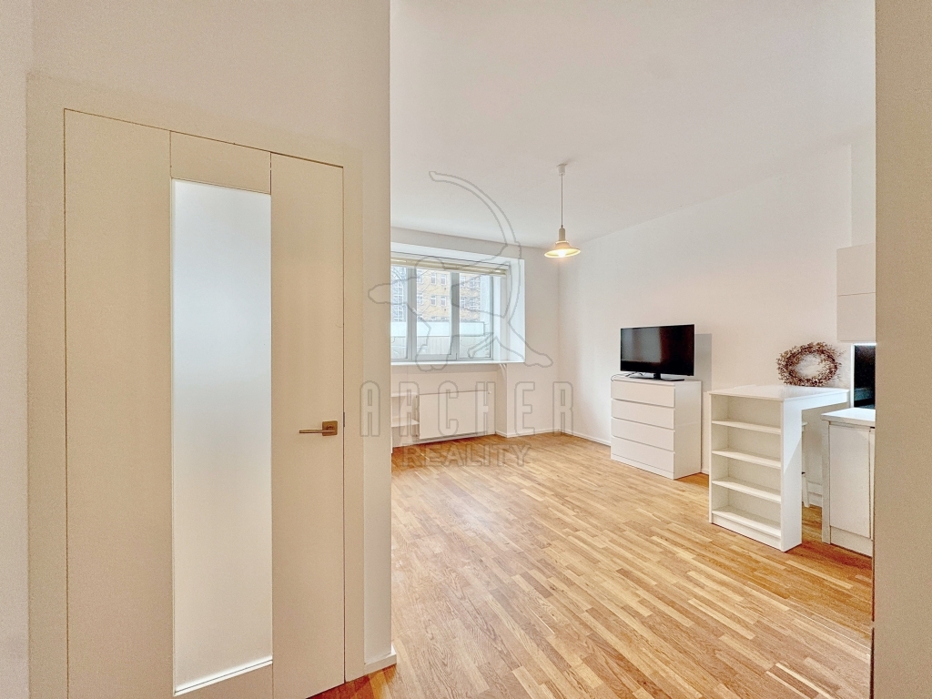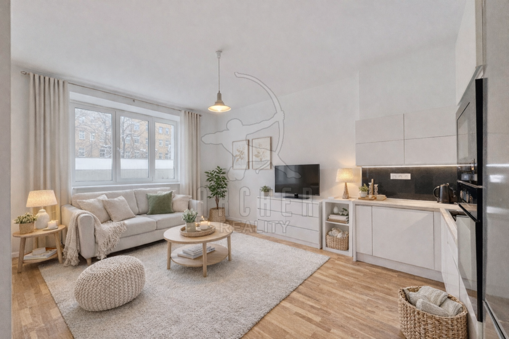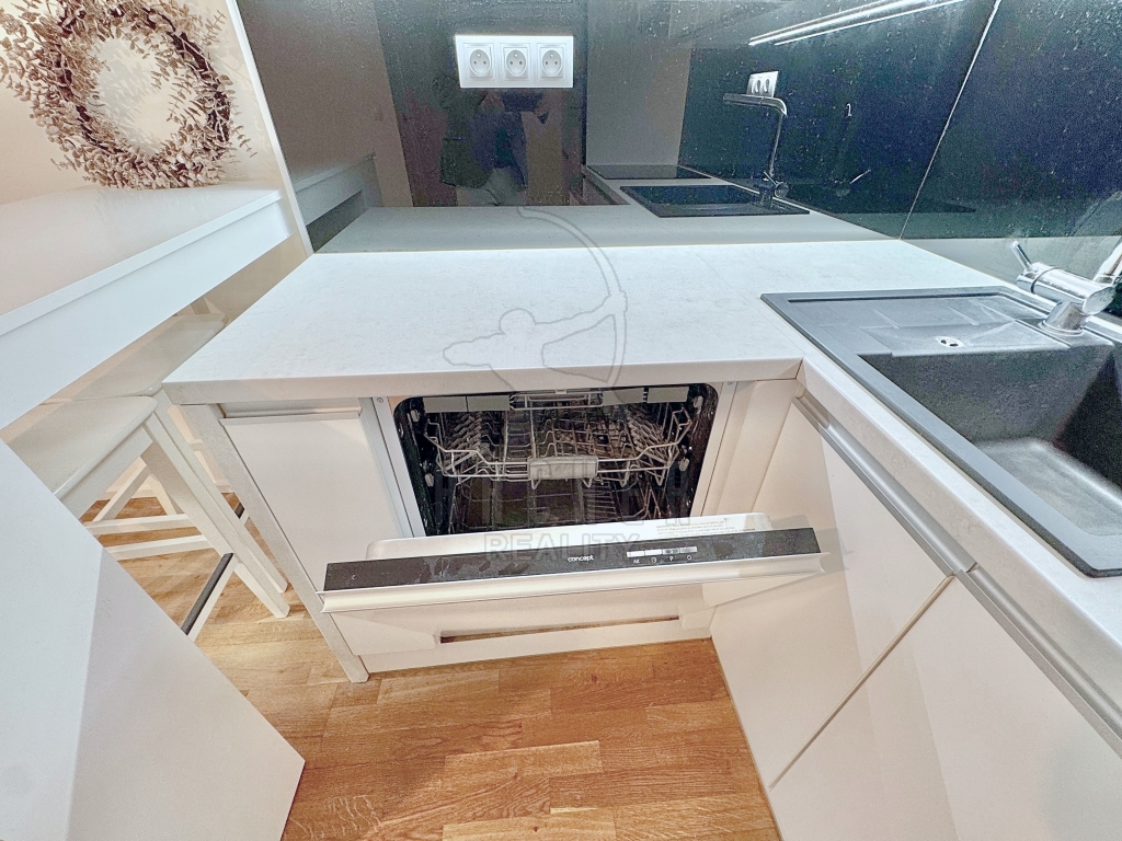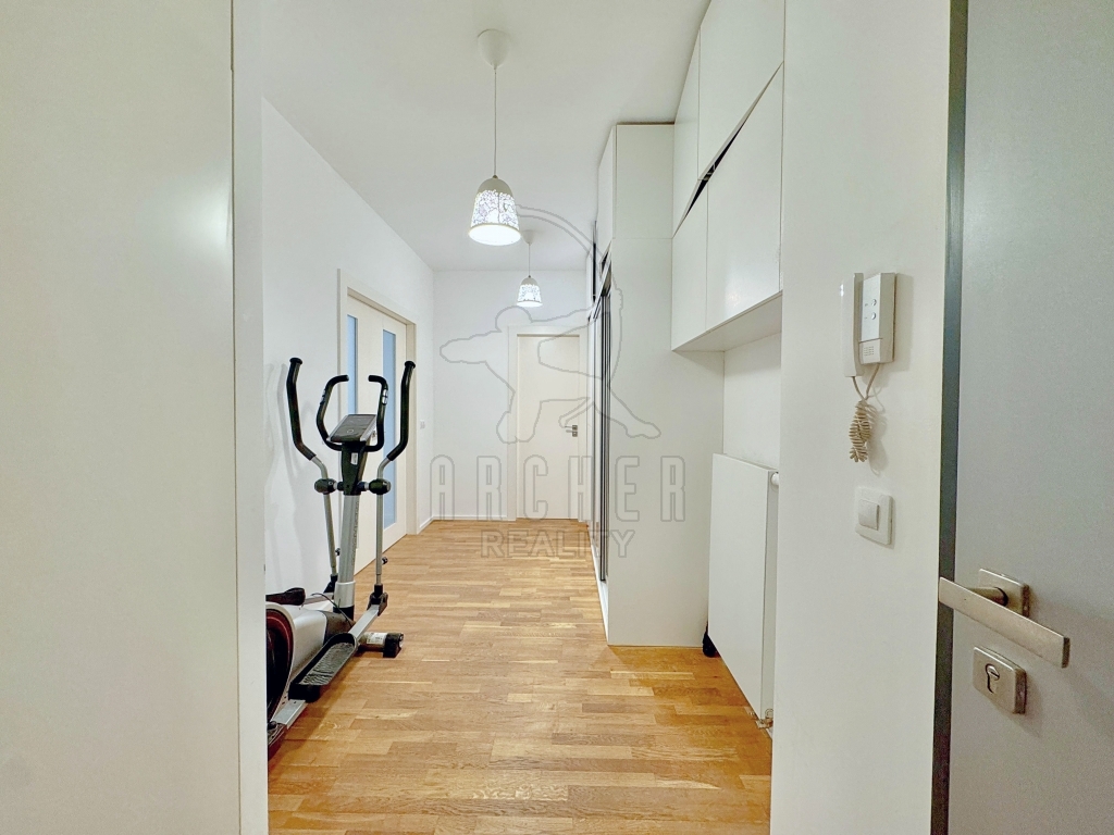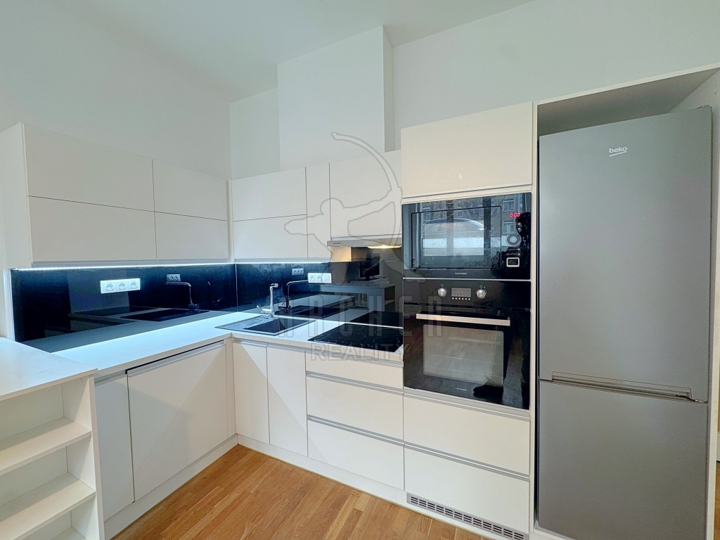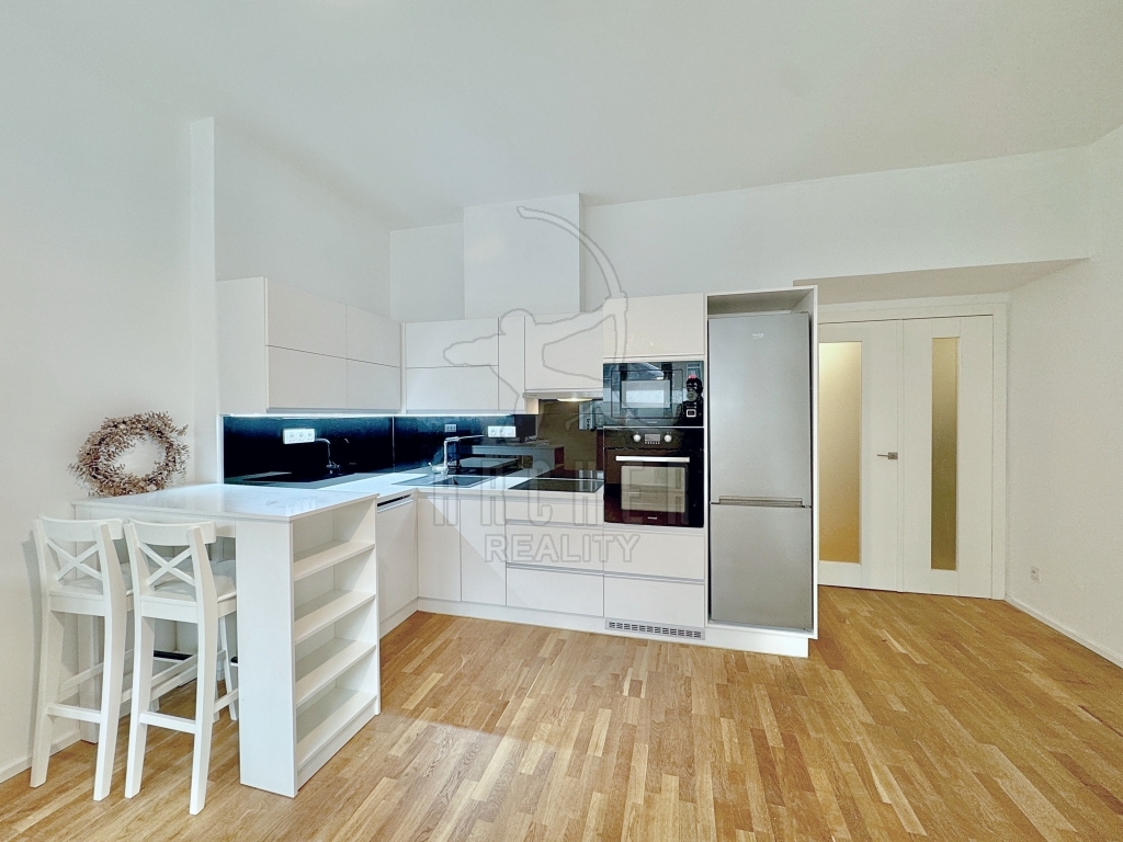 | Popis vybavení bytu | Kompletně vybavená kuchyňská linka s vestavěnými spotřebiči včetně stolu s vysokými židlemi, vestavěné skříně na obou stranách předsíně, vestavěný nábytek šatna. |