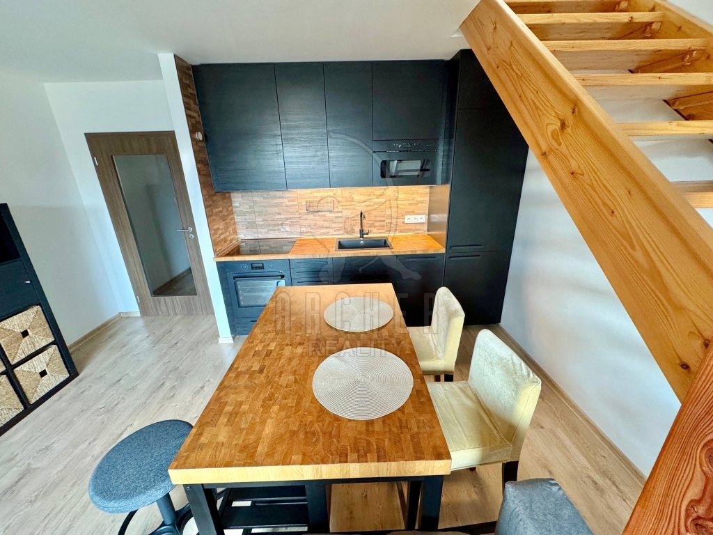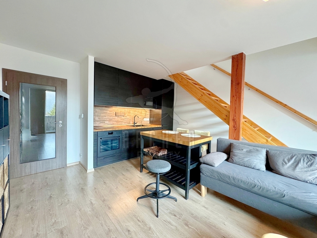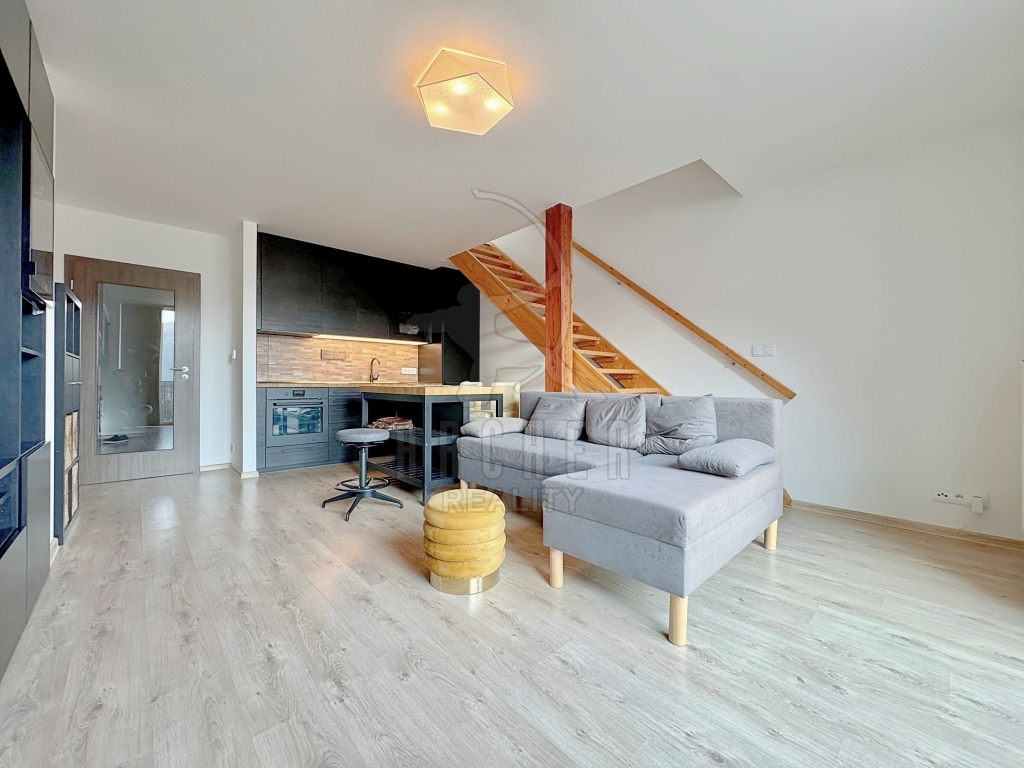 | Popis vybavení bytu | Kuchyňská linka s vestavěnými spotřebiči, obytná stěna, stůl s židlemi, sedací souprava, skříň se zrcadlem v ložnici, úložný systém v šatně. |