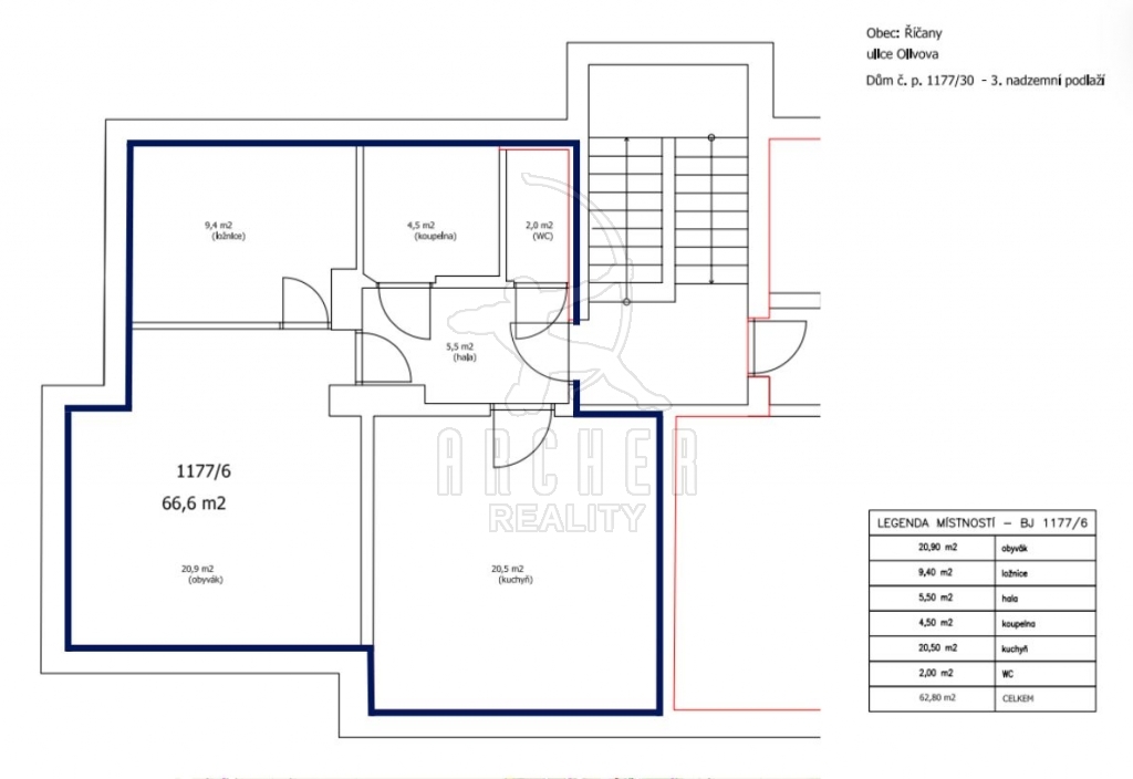 Byt se nachází ve 2. patře (3. NP) menšího cihlového domu se šesti jednotkami v atraktivní a klidné části Říčan.