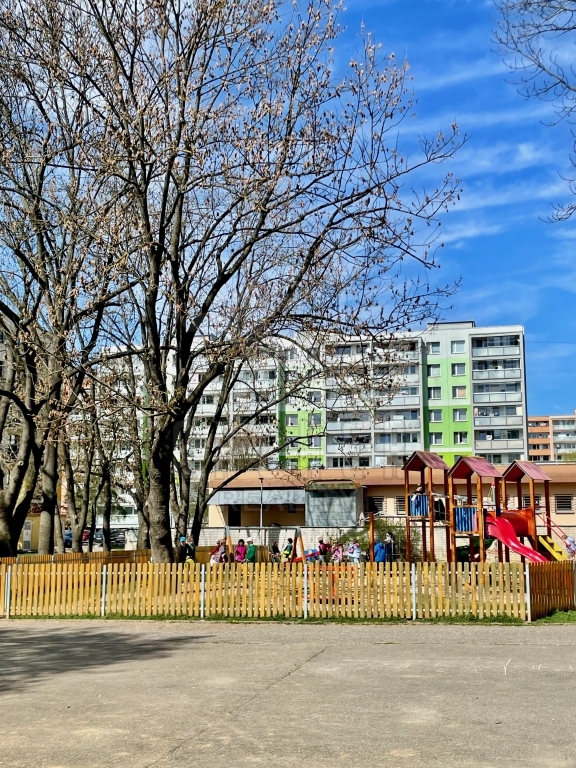 Velkou výhodou je umístění domu v příjemném prostředí plném zeleně - před domem lze odpočívat ve stínu stromů, v bezprostřední blízkosti je i dětské hřiště.