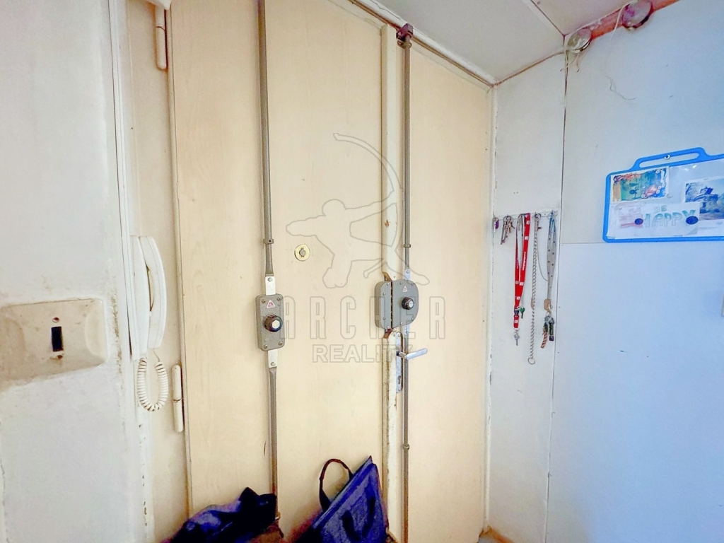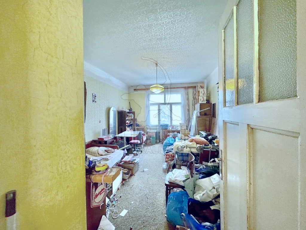 Vstup je přes prostornou chodbu, která propojuje místnosti v bytě. Je prosvětlena prosklenými dveřmi z lodžie. Všechny místnosti mají vysoké stropy a původní dřevěná špaletová okna. Prostorné pokoje mají pod koberci původní masivní parkety vhodné k renovaci. Ložnice má samostatný přístup do koupelny. Toaleta má samostatnou místnost.