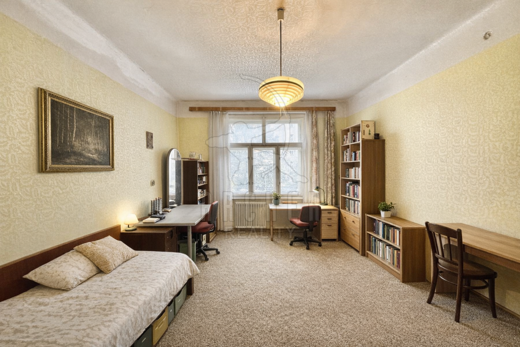 Byt v klidné ulici na kraji Střešovic nedaleko Pražského hradu. Velké pokoje mají okna jižním směrem s výhledem do parku s hřištěm. Okno z kuchyně a výhled z lodžie vede do zahrad ve dvoře. Stav k rekonstrukci nabízí možnost nové dispozice na 3+kk nebo 3+1.
