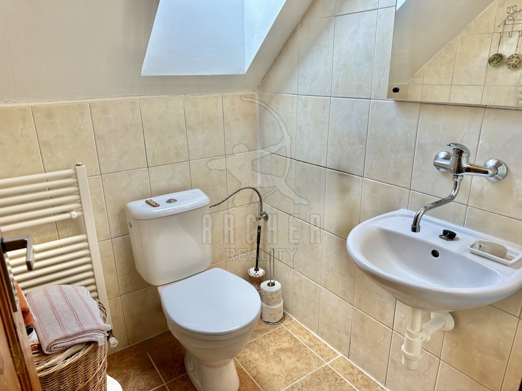 Dům působí velmi příjemně a opravdově. Má hezkou venkovskou atmosféru, kterou dělají poctivé materiály, přiznané trámy, útulné podkrovní místnosti a celkově citlivě udržovaný charakter domu. Má příjemné teplo a klid.