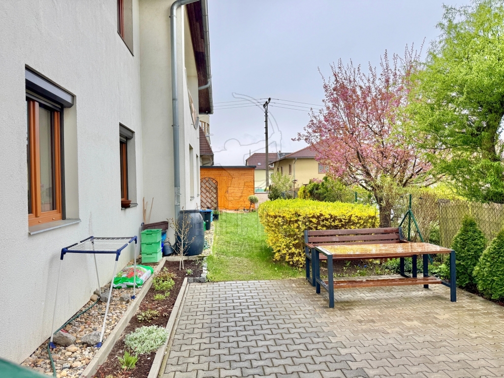 Byt je v přízemí a vchod má blízko domovním dveřím. Je bezbariérový. K bytu je možno užívat domovní zahradu na západní straně domu a kolárnu. V okolí domu je dostatek parkovacích míst.