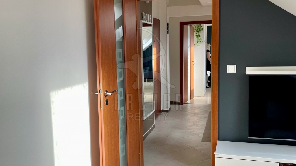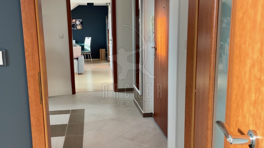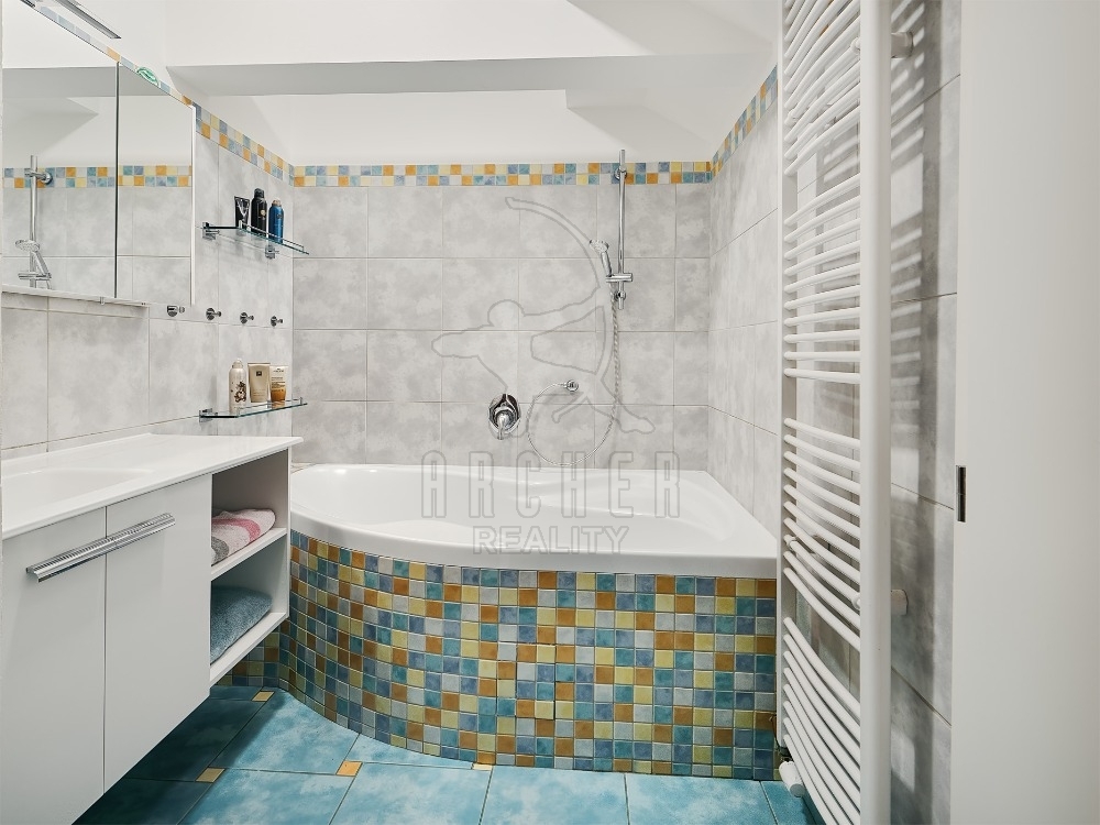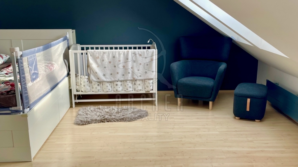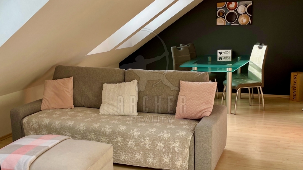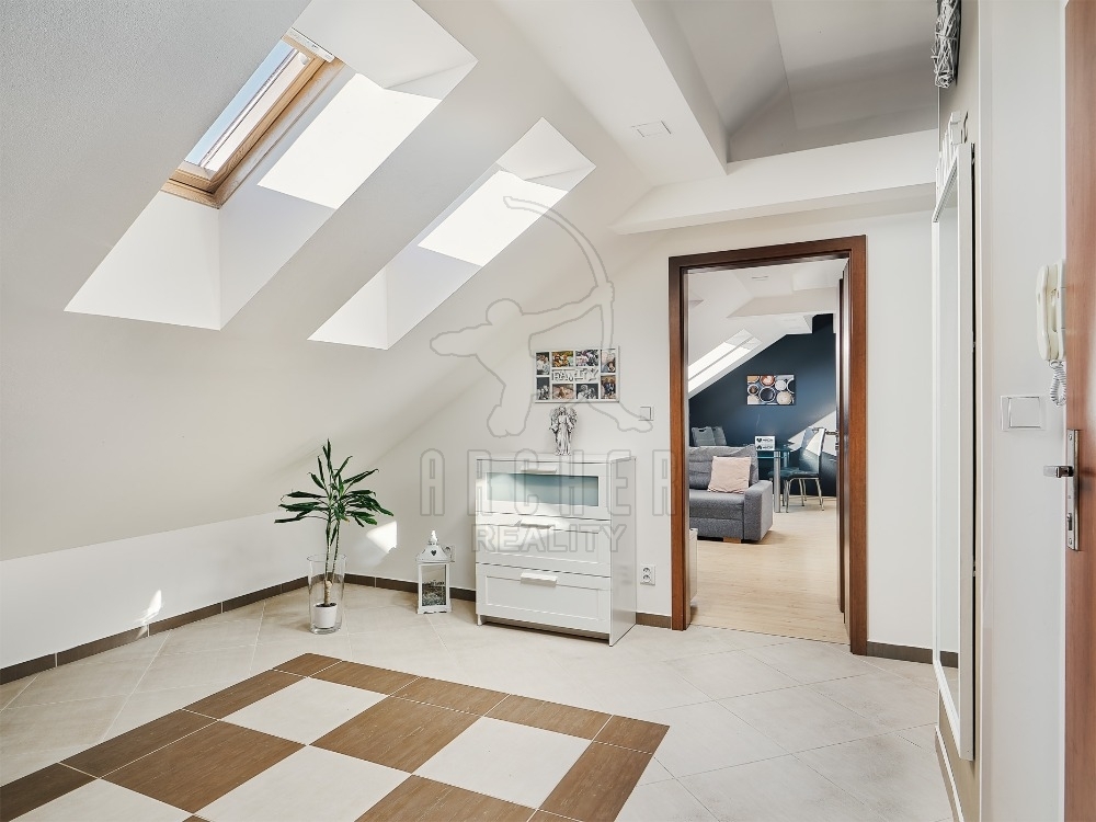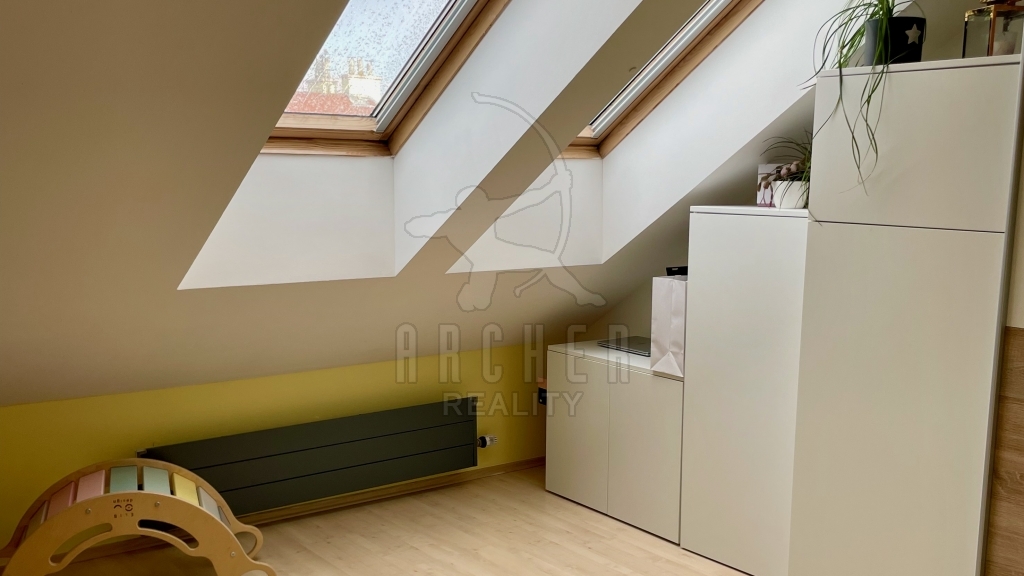 | Popis vybavení bytu | Střešní okna Velux plovoucí podlahy, keramická dlažba kuchyňská linka s indukční deskou, horkovzdušnou troubou, vestavnou myčkou a mikrovlnnou troubou |