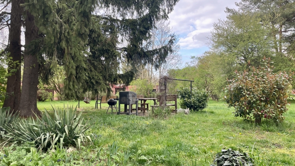 - sdílený balkon s výhledem do zeleně, před domem posezení s grilem i ohništěm